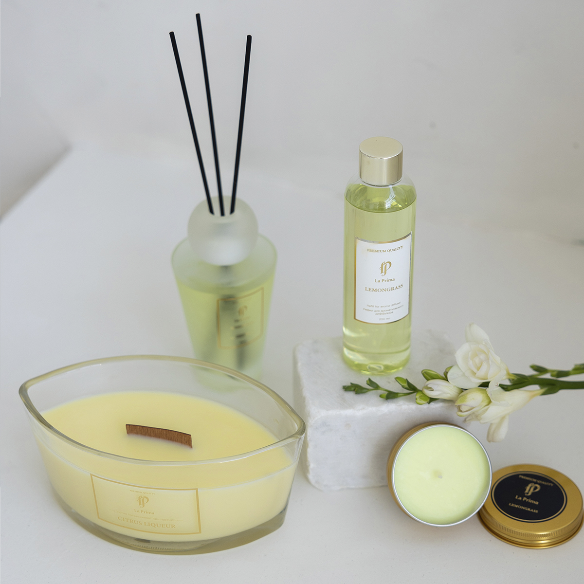 «Lemongrass» (Лемонграсс) Аромат - Легкий, воздушный, сладковатый аромат с мягким цитрусовым мотивом и едва уловимой травянистой ноткой. Своим ненавязчиво-приятным звучанием он поднимает настроение, бодрит и тонизирует.