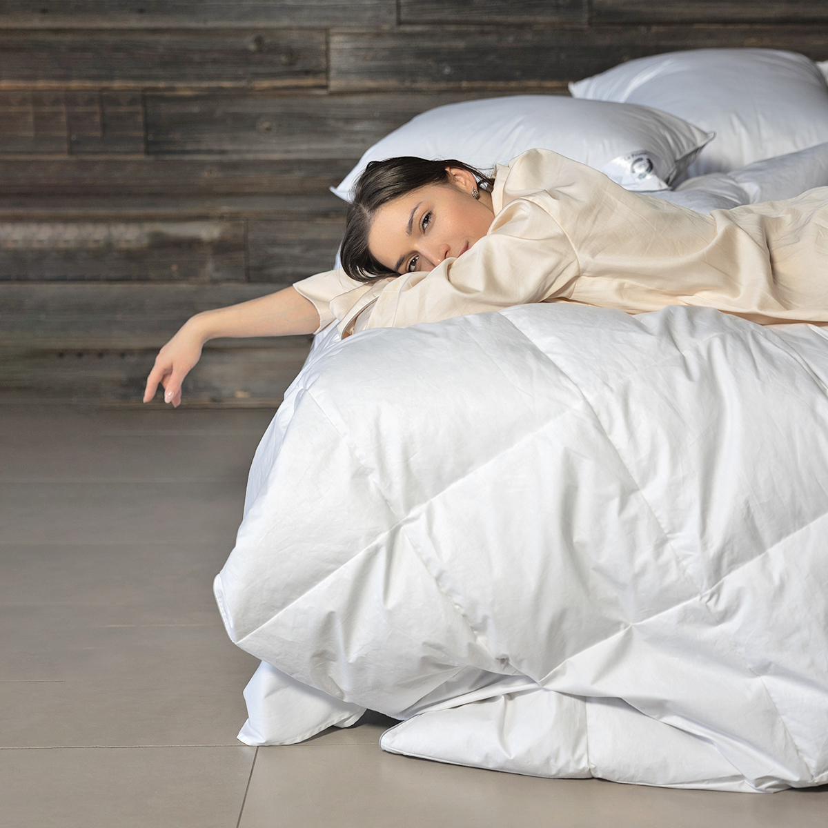 Одеяло произведено из 100% серого гусиного пух - экологически чистого природного материала. Пух собран и отсортирован вручную – это гарантирует высокий стандарт качества.