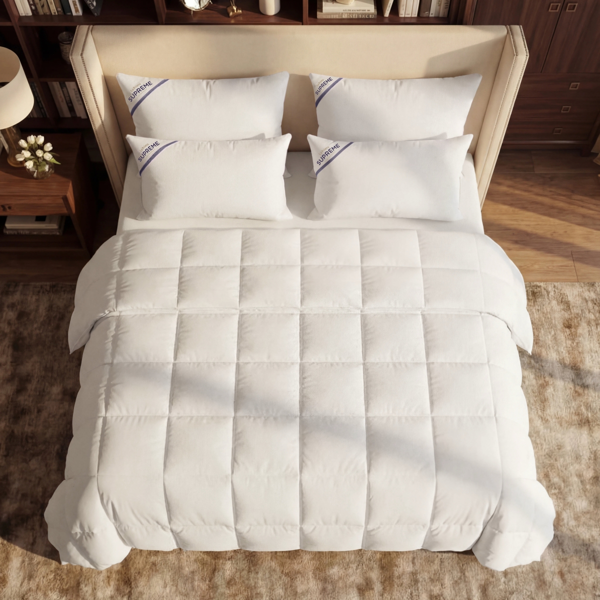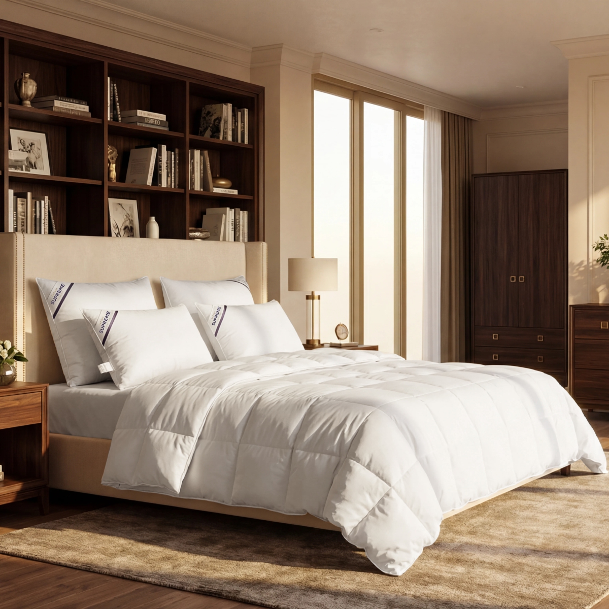 Почувствуйте настоящее сибирское тепло, созданное для вашего идеального отдыха. Supreme Collection — это премиальные пуховые одеяла из натурального белого гусиного пуха высочайшего качества. Они дарят невесомое, но интенсивное тепло, адаптируясь к вашему ритму жизни и обеспечивая здоровый микроклимат всю ночь.