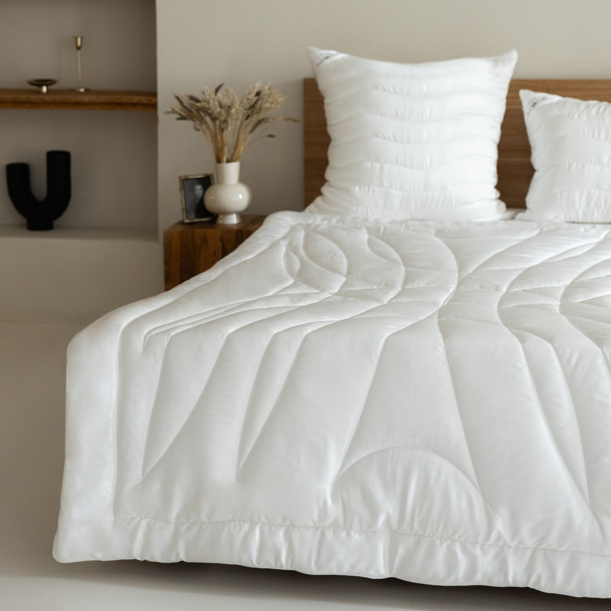 Непревзойденная легкость и мягкость. Уникальный наполнитель отличается невероятной легкостью и воздушностью, в сочетании с шелковистым лиоцеллем создает ощущение невесомости и комфорта.