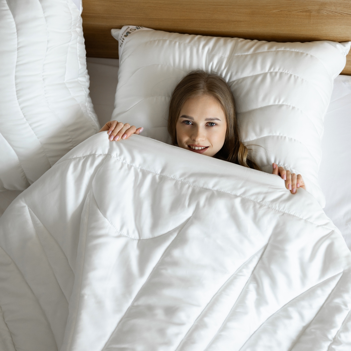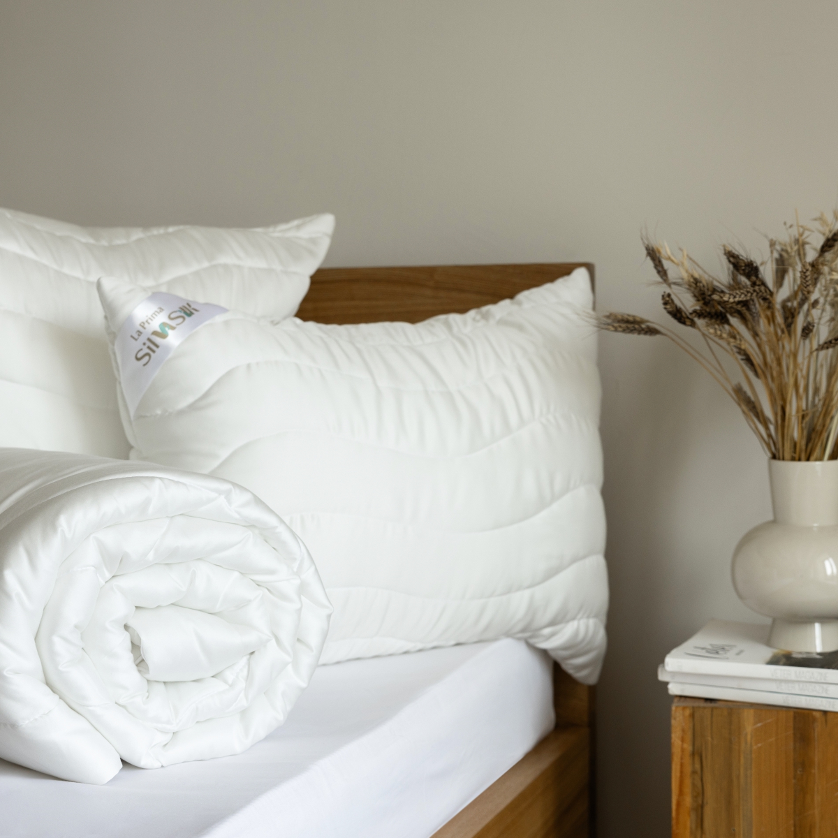 Почувствуйте роскошь заботиться о себе каждую ночь с премиальным одеялом SilvaSilk из уникальной ткани 100% лиоцелл с коллагеном в сочетании с наполнителем из 100% NanoSilk.