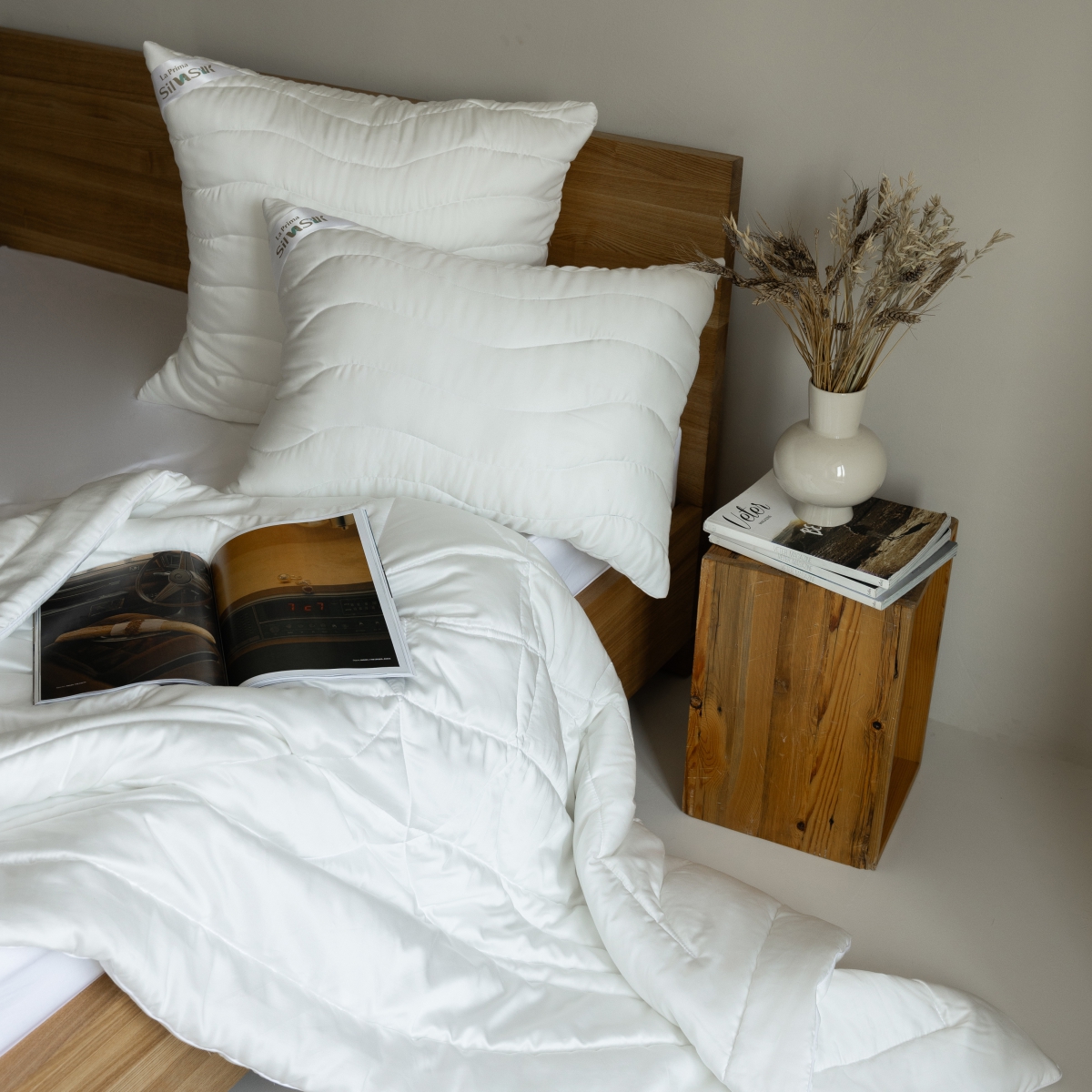 Простота в уходе. Изделия легко стирать в домашних условиях в стиральной машине, съемный чехол подушки можно стирать отдельно, что делает SilvaSilk удобными в повседневном использовании.