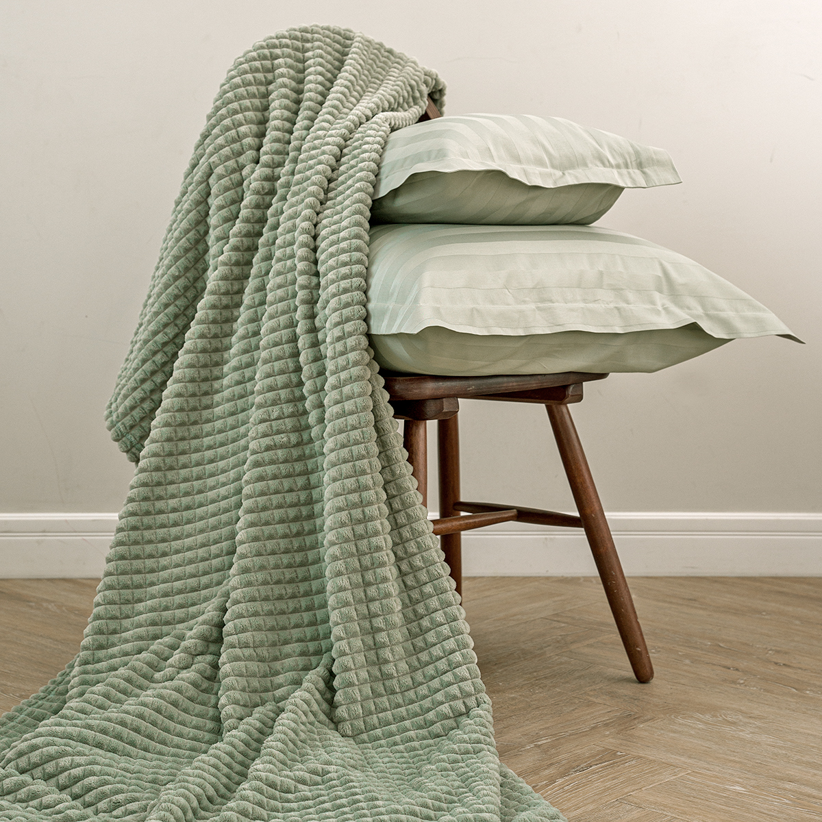 Плед Нефрит, невероятно нежный, многогранный, освежающий и при этом богатый оттенок, он играет сотней различных граней, обладая неожиданном эффектом и переливом. Одновременно тёплый и холодный, он прекрасно сочетается практически с любой палитрой, дополняя как яркие, так и сдержанные оттенки, придавая помещению свежесть, спокойствие и умиротворение.