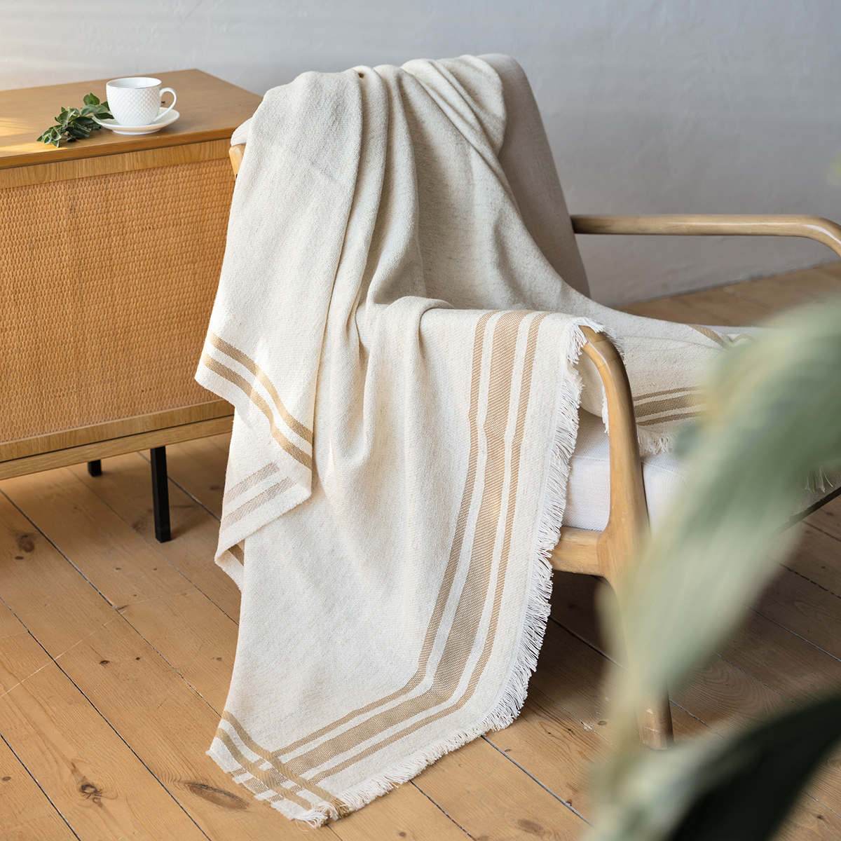 Плед декорирован лентой и фирменным вкладышем.
