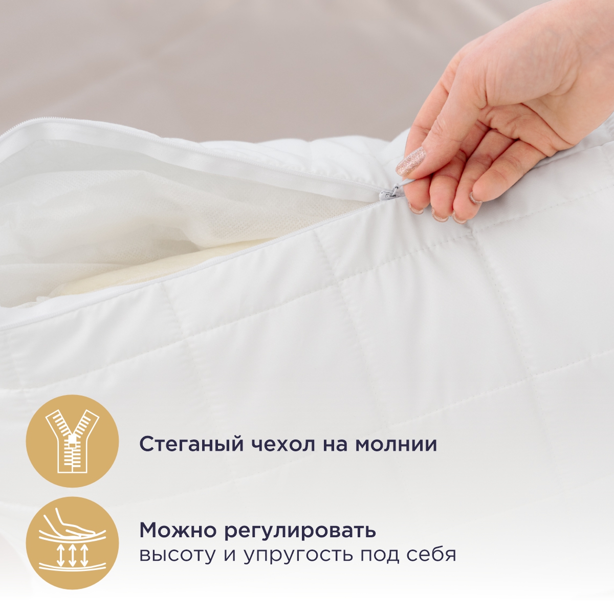 Чехол подушки – стеганный, на молнии: в составе стежки инновационное антиаллергенное микроволокно