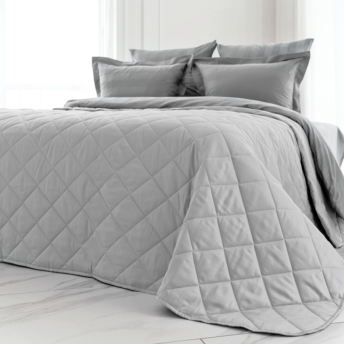 ОСОБЕННОСТЬ модели: хлопковое покрывало на кровать с закругленным уголком, практичной окантовкой по периметру изделия и стильной стежкой в виде ромбов. Верхняя и нижняя часть покрывала выполнены из высококачественного сатина - безопасного и натурального материала.
