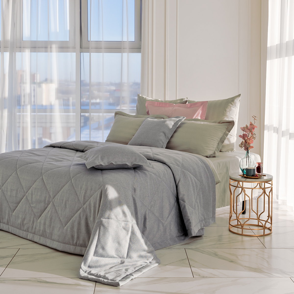 За покрывалом очень легко ухаживать, его можно стирать в домашних условиях при температуре 30С. Покрывало на кровать отлично держит форму и не дает усадку.