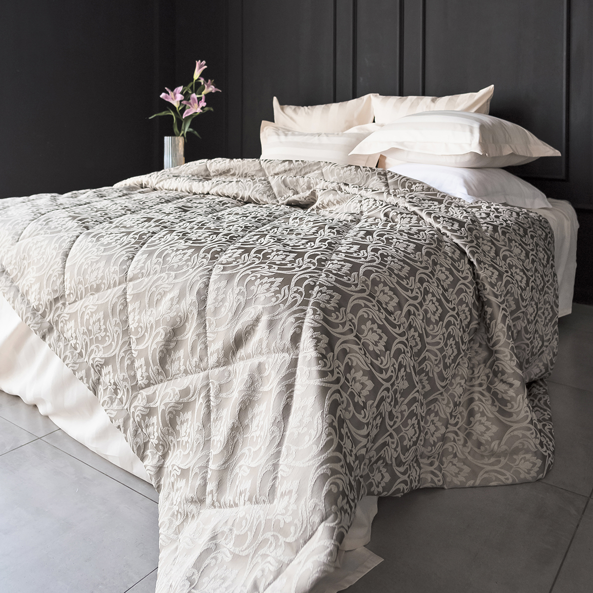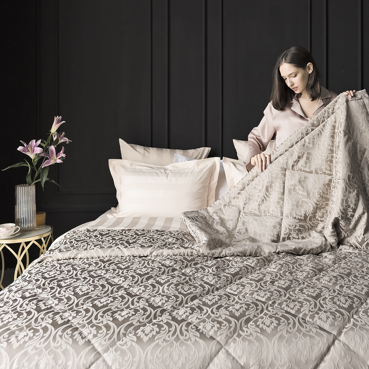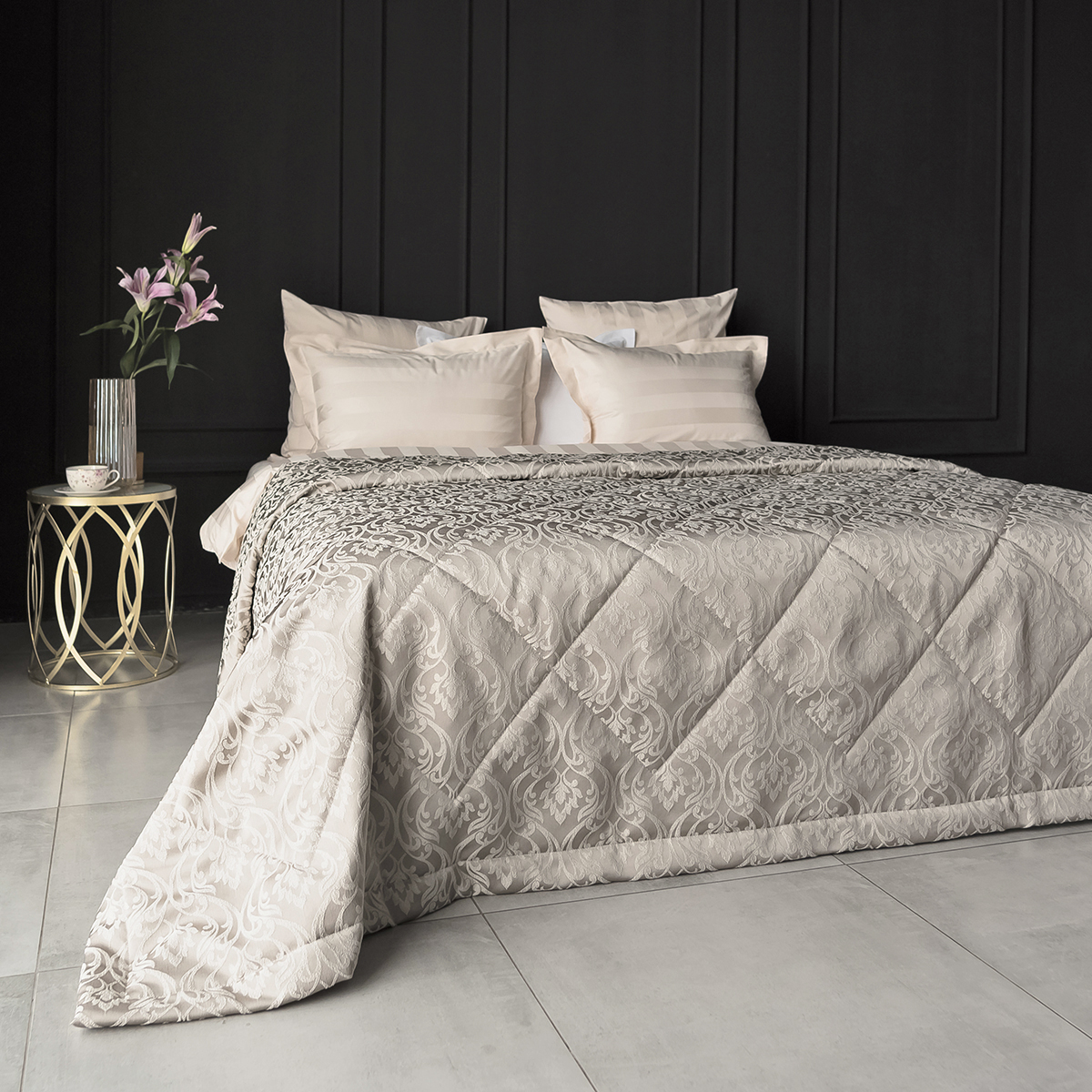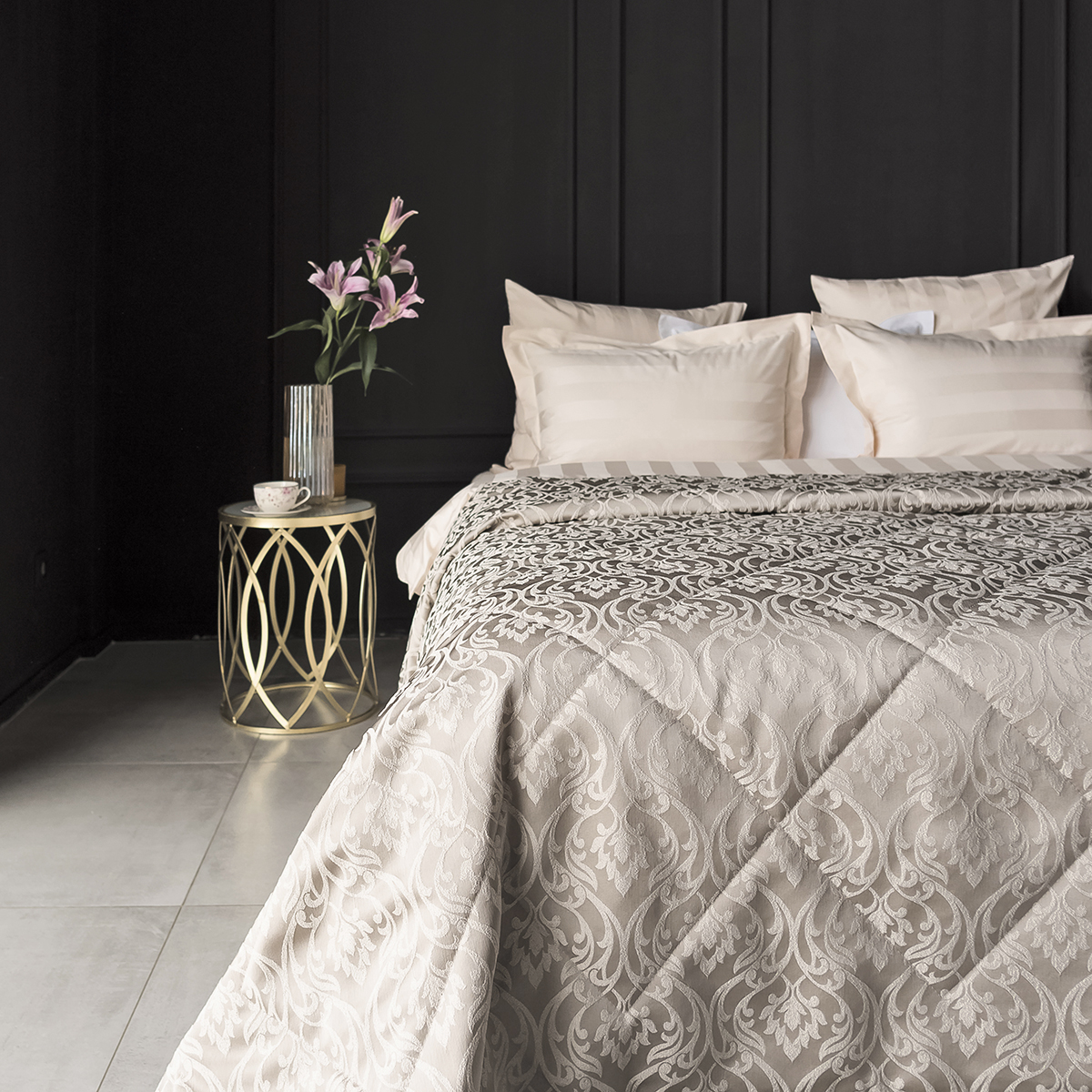 Новая коллекция жаккардовых покрывал Domiano- роскошная классика, богатые фактуры, нежные оттенки, утончённость исполнения. Это жемчужина декоративного искусства, которая привнесет нарядную ноту интерьеру спальни.