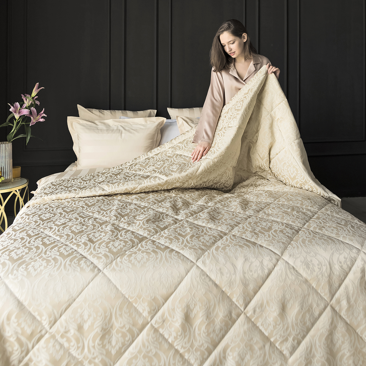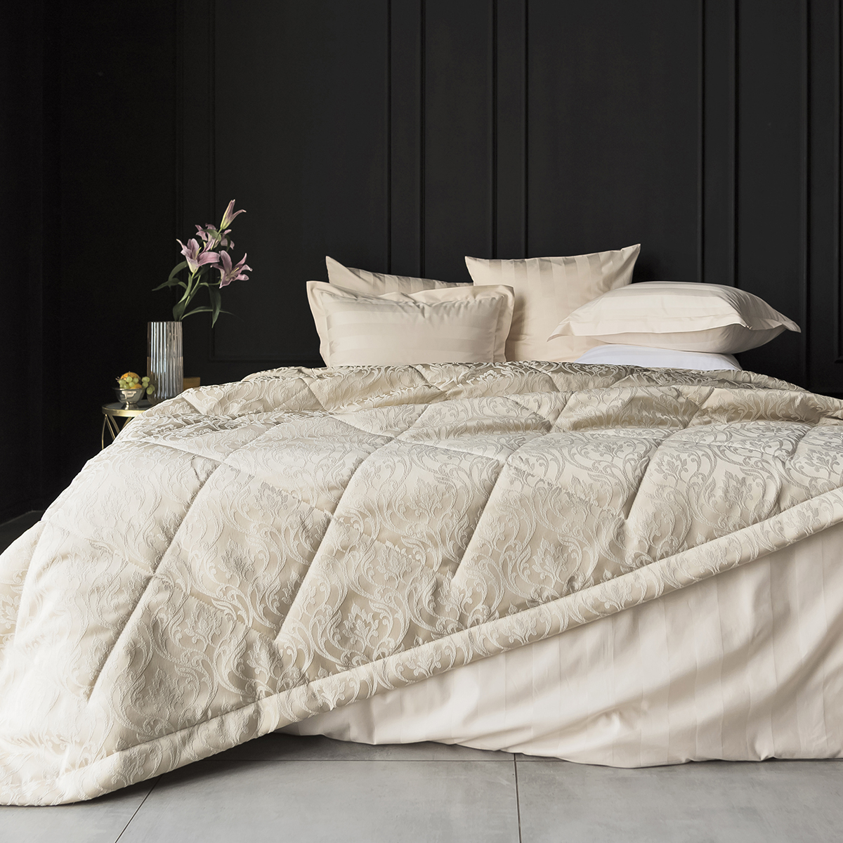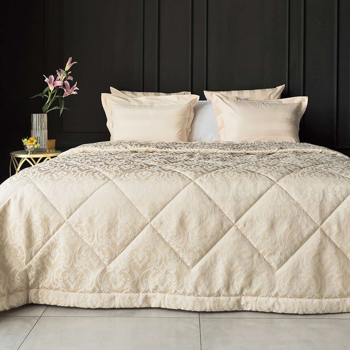Новая коллекция жаккардовых покрывал Domiano- роскошная классика, богатые фактуры, нежные оттенки, утончённость исполнения. Это жемчужина декоративного искусства, которая привнесет нарядную ноту интерьеру спальни.