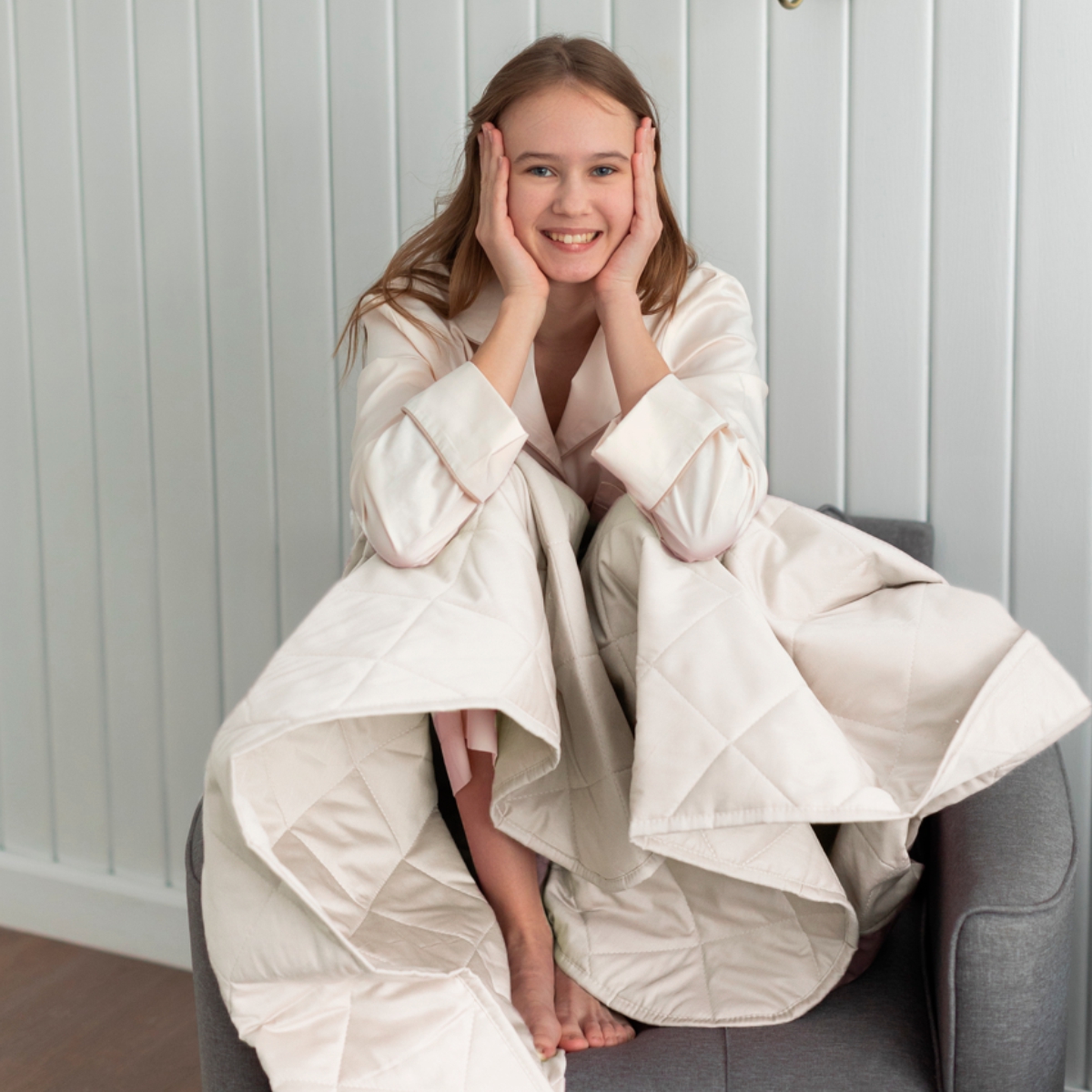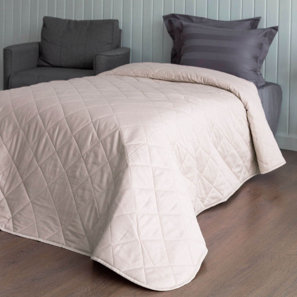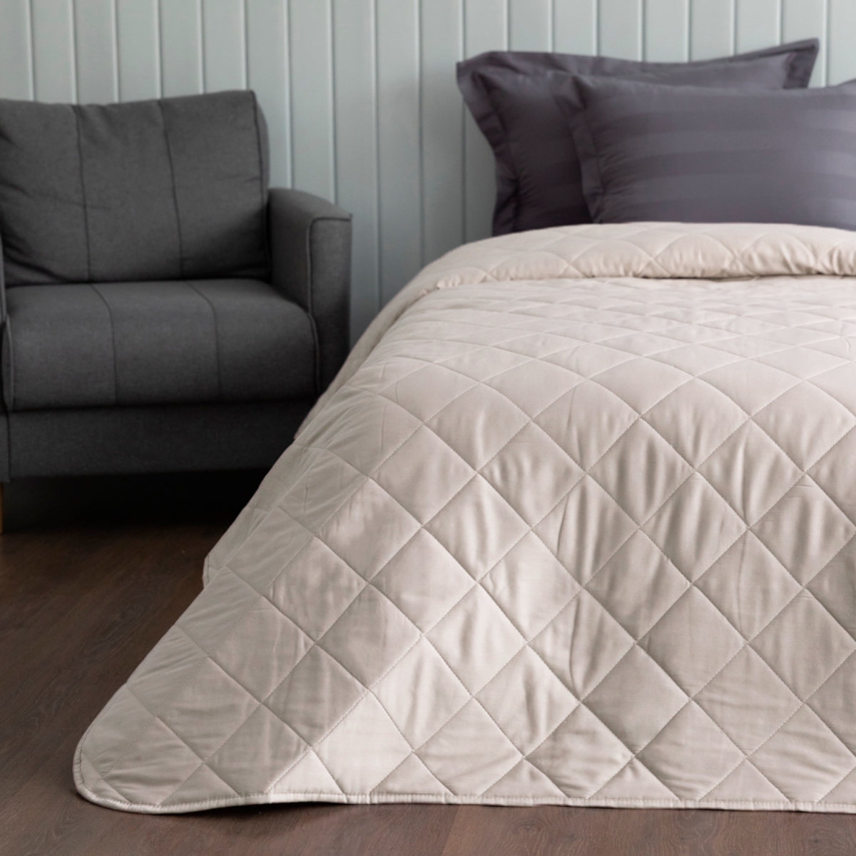 Нежное двухстороннее стеганое покрывало из 100% хлопка (сатин, плотность 205ТС) с гипоаллергенным 3D-наполнителем (100 г/м²) создано для тех, кто ценит: