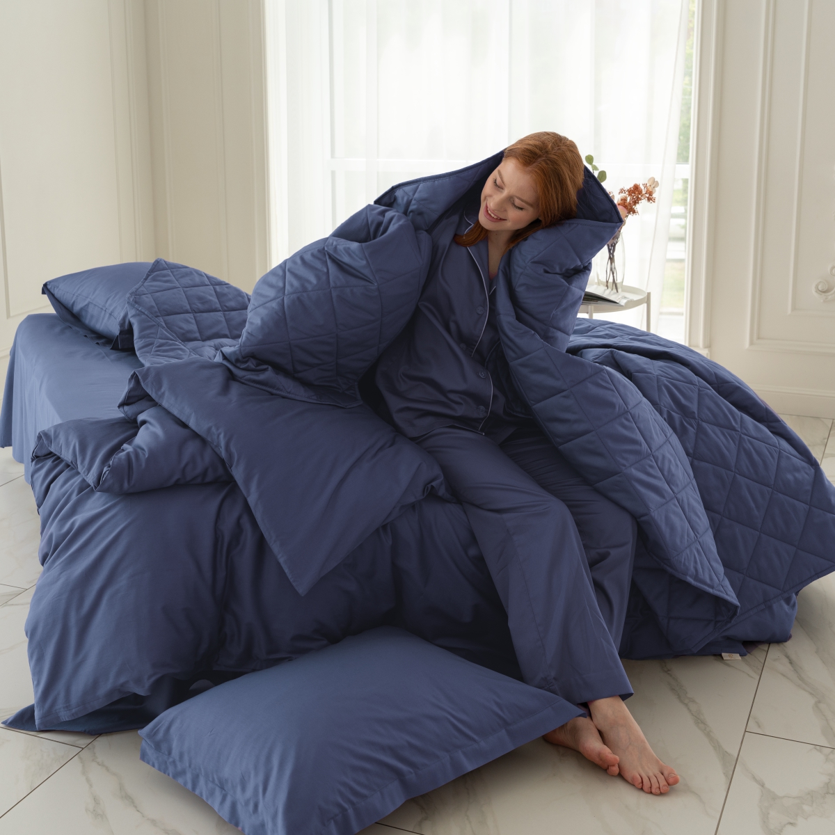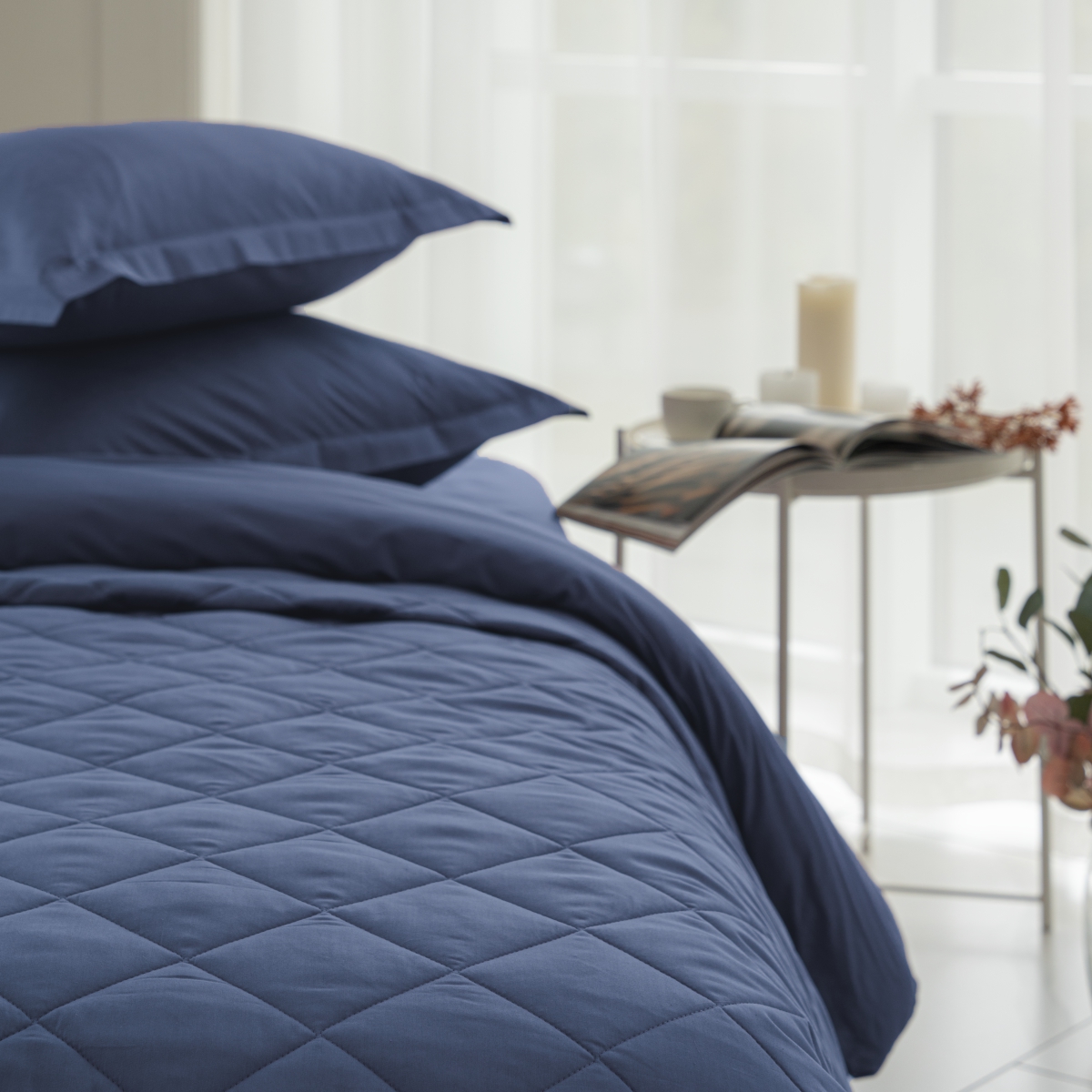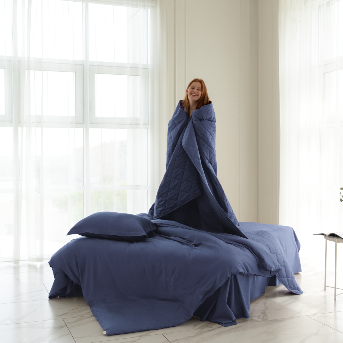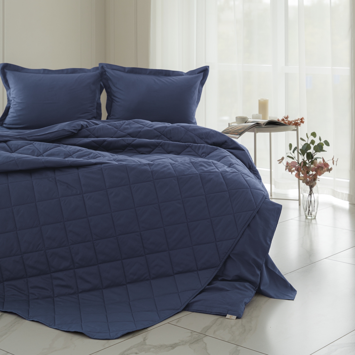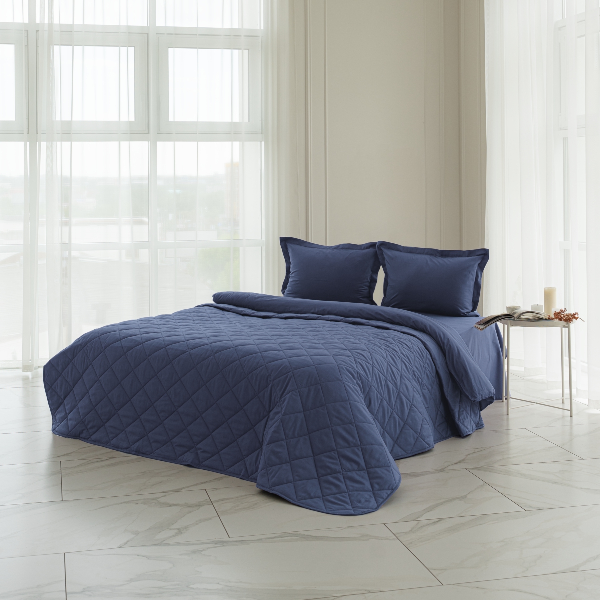 Нежное двухстороннее стеганое покрывало из 100% хлопка (сатин, плотность 205ТС) с гипоаллергенным 3D-наполнителем (100 г/м²) создано для тех, кто ценит: