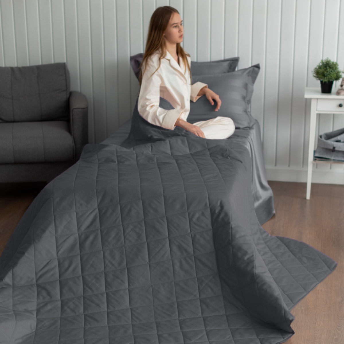 Нежное двухстороннее стеганое покрывало из 100% хлопка (сатин, плотность 205ТС) с гипоаллергенным 3D-наполнителем (100 г/м²) создано для тех, кто ценит: