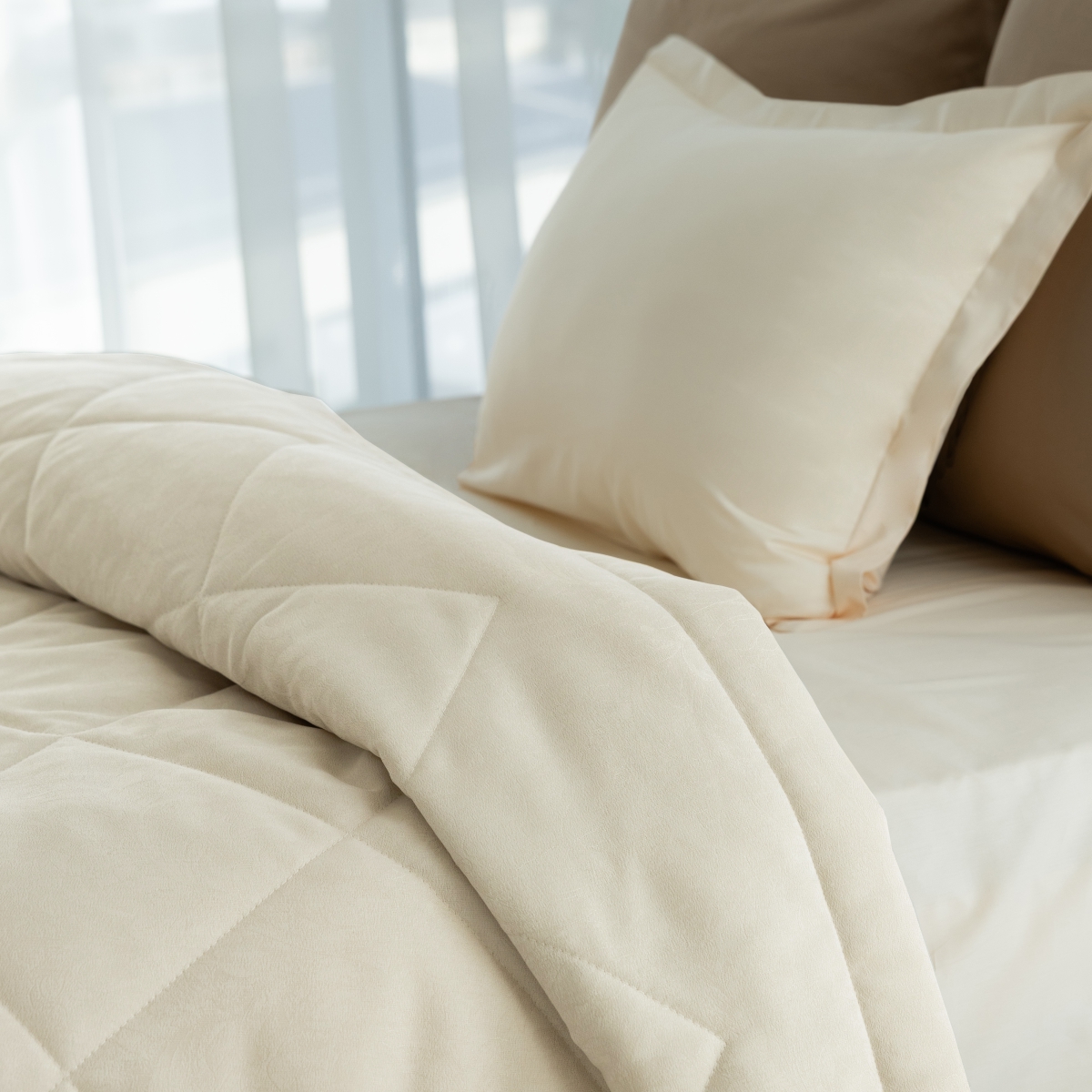 Подклад: микрофибра велюр, за счет своей фактуры он предотвращает скольжение покрывала на кровати.