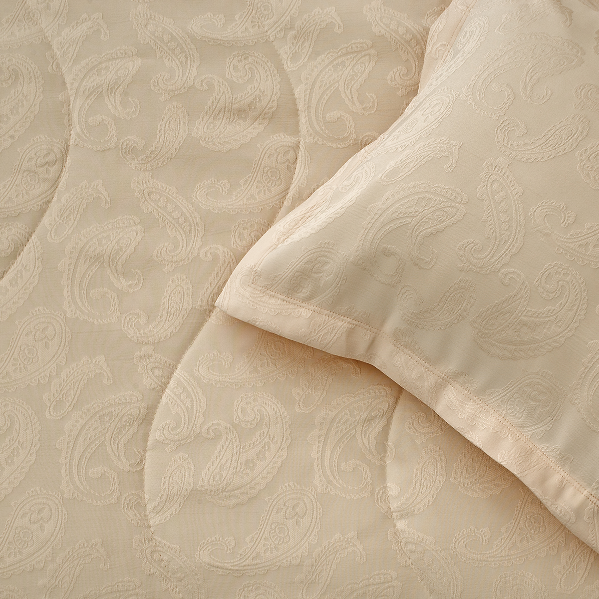 В комплект входит: стеганное покрывало на подкладе размер 240*260 см и 2 декоративные наволочки 45х45 см на молнии. Наволочки с четырех сторон декорированы ушками шириной 3 см.
