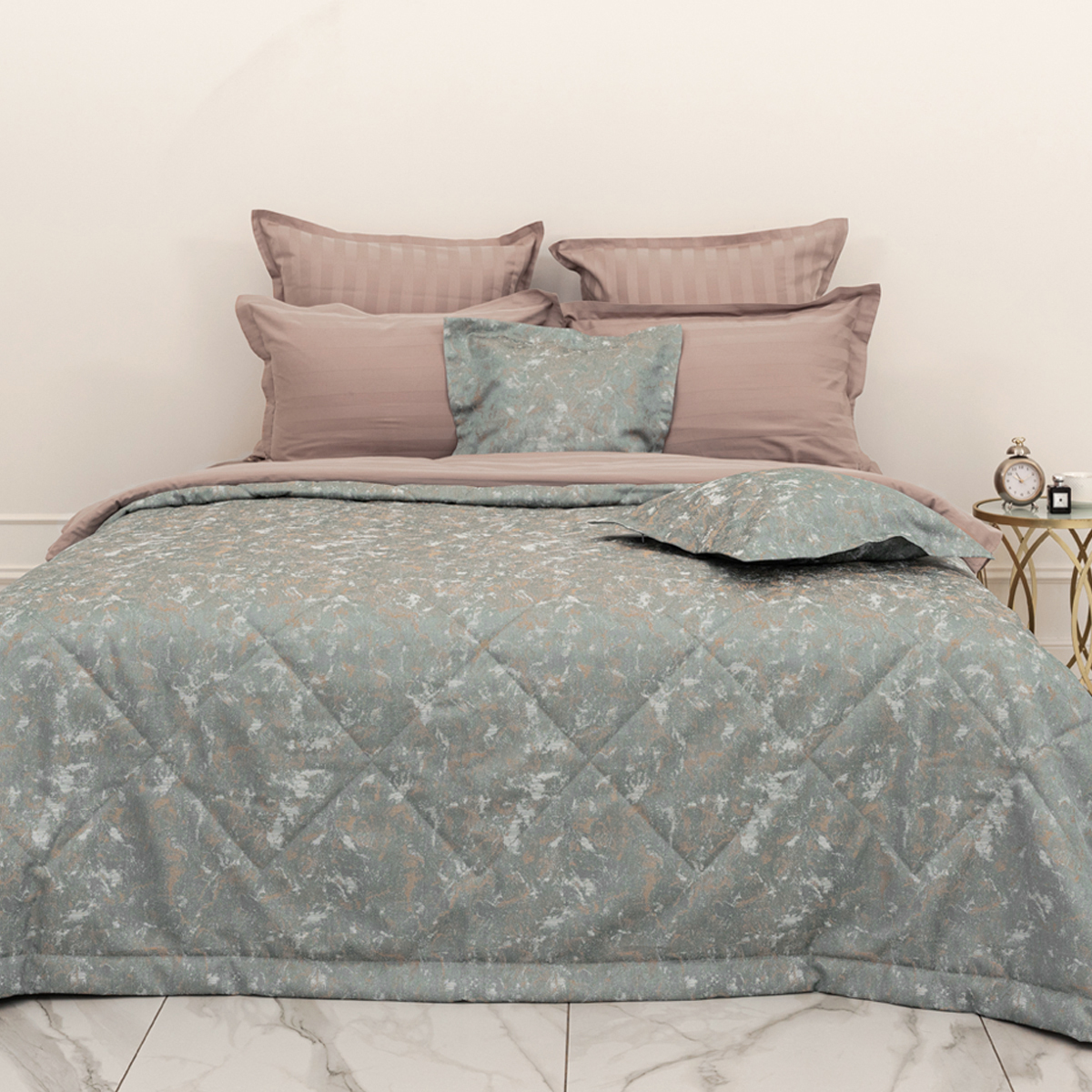 Покрывало Glori - современный стильный дизайн, с ноткой индивидуальности и завораживающей глубины. Она придаст пространству спальни особый шарм. Смотрится изысканно и элегантно, сочетает в себе изящный жаккардовый блеск, благородные цвета и фактуру.