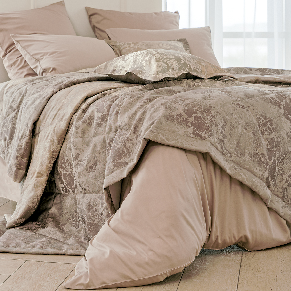 К покрывалу можно выбрать комплект штор из коллекции La Prima для создания неповторимой изюминки в вашем доме.