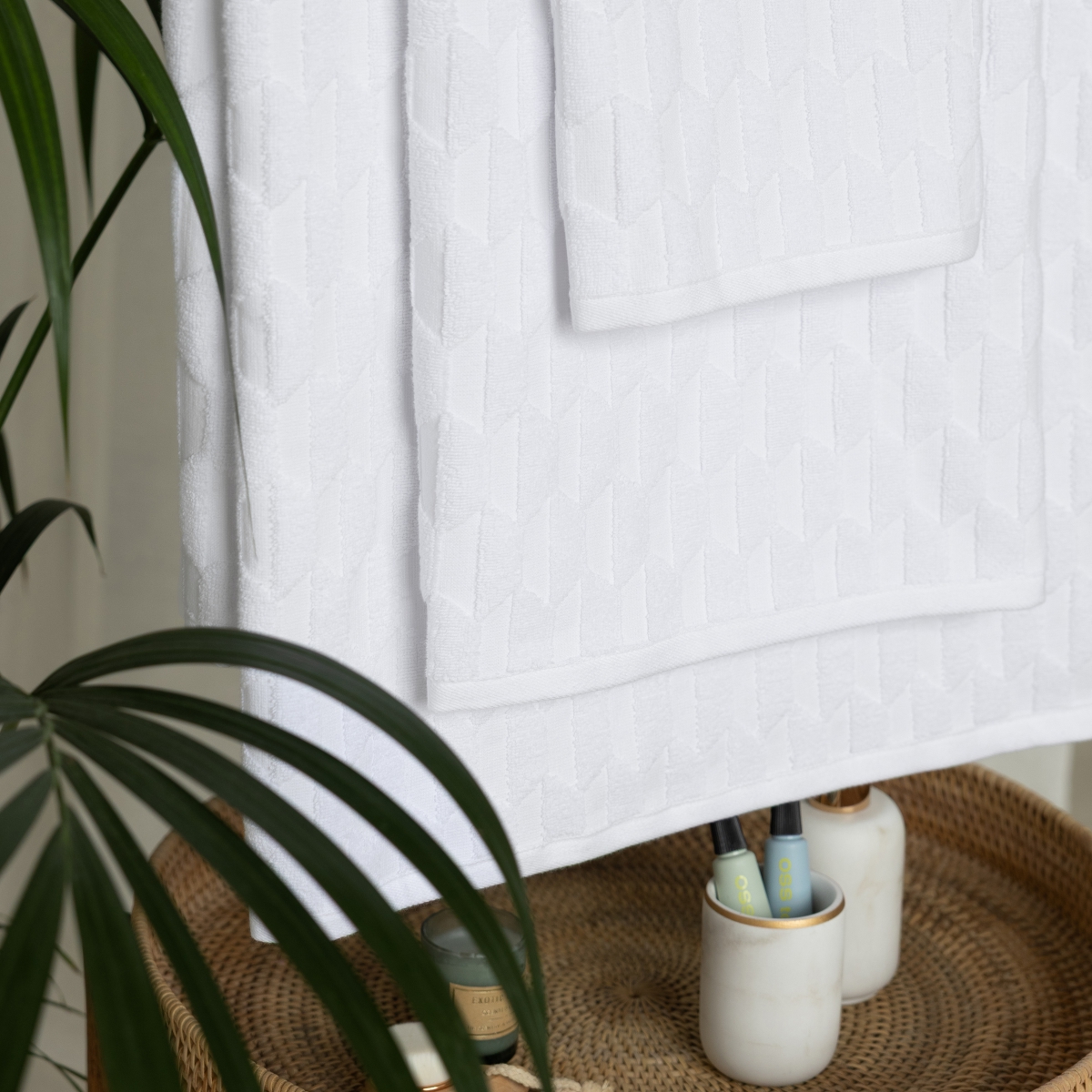 Махровые полотенца Diamond - это не просто полотенца, это воплощение элегантности и комфорта. Вдохновленные сиянием ограненных бриллиантов, мы создали коллекцию с узором в виде геометричной выстрижки, которая напоминает алмазную огранку, создает игру света и тени, превращая обычное полотенце в предмет интерьерного искусства.
