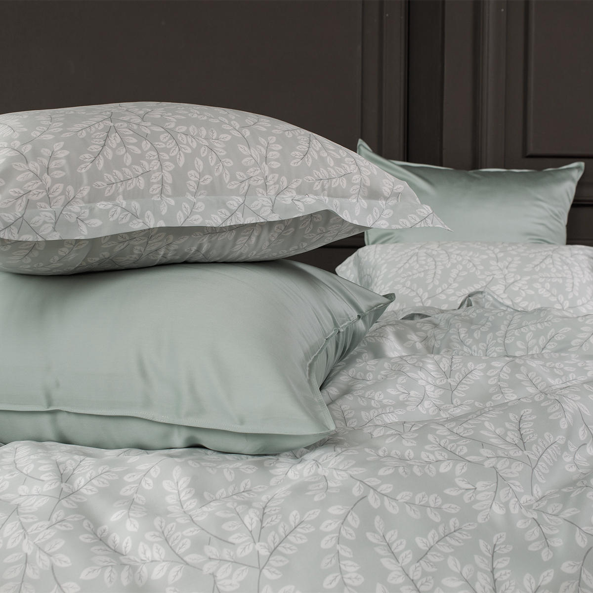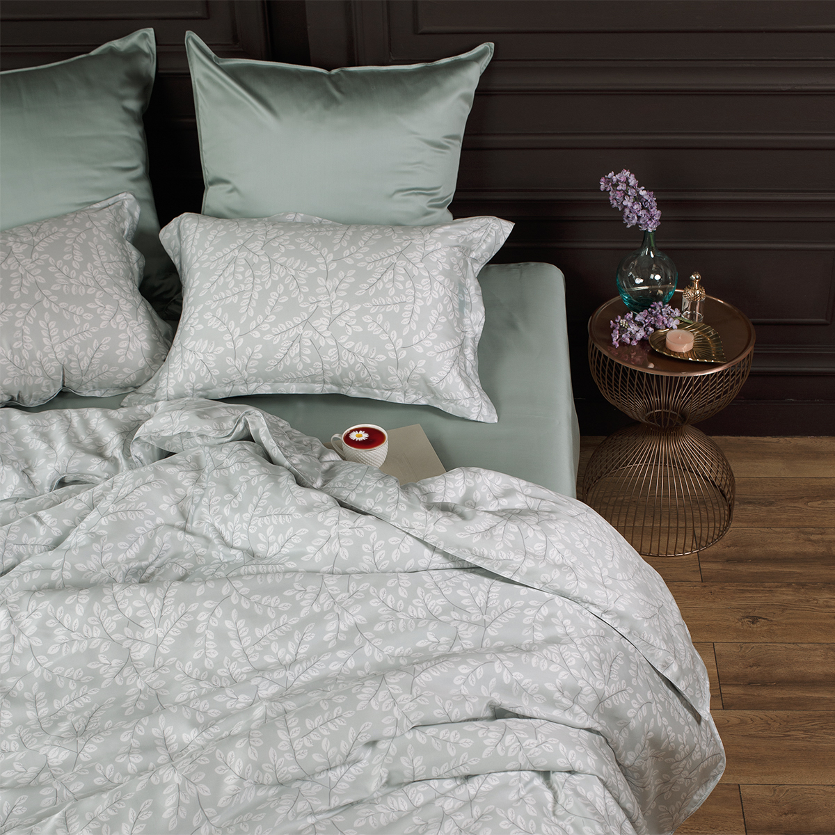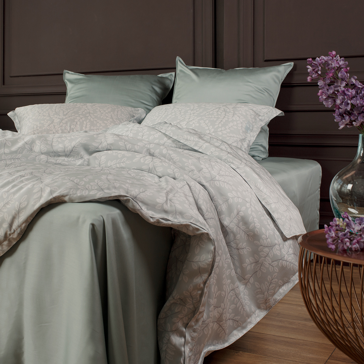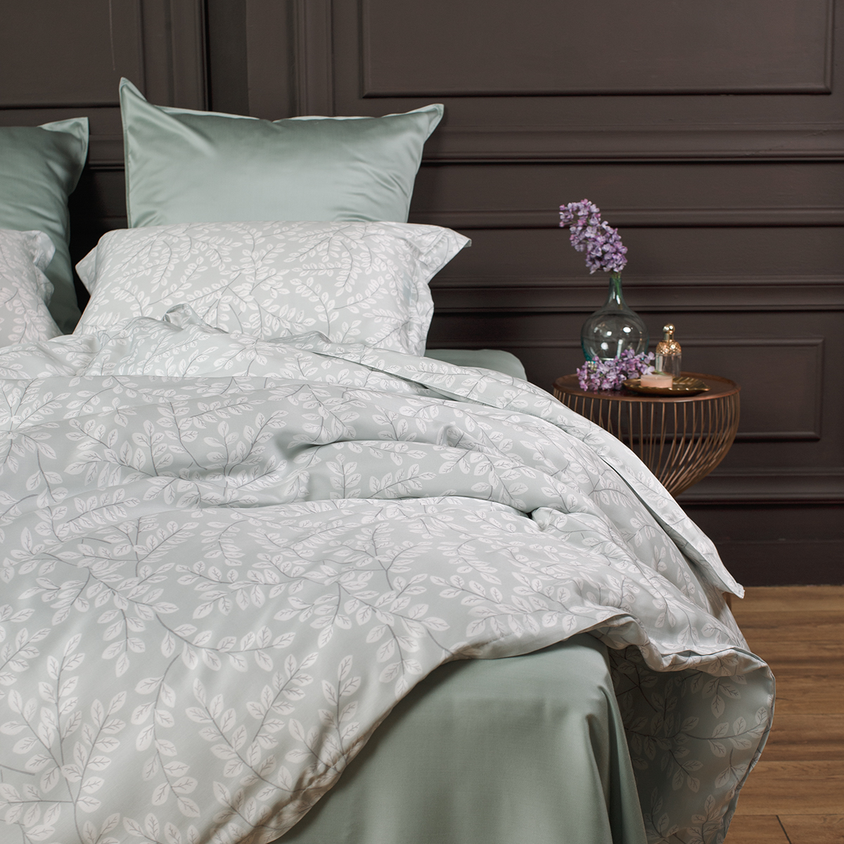 Легкий неуловимый флер элегантного растительного орнамента на освежающем нежно-зеленом фоне привнесет в пространство спальни легкость и чистоту летнего утра. Чувственность, легкость и воздушность мгновения.