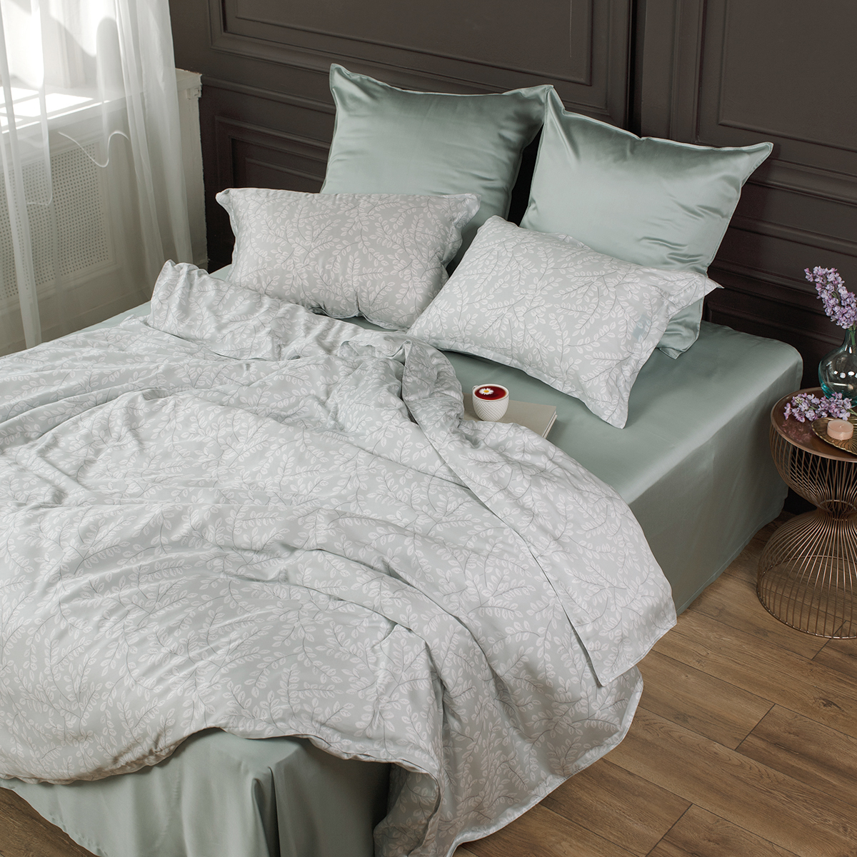 Комплект постельного белья произведен из 100% эвкалиптового волокна Tencel, которое ученые называют инновационным материалом нового поколения.
