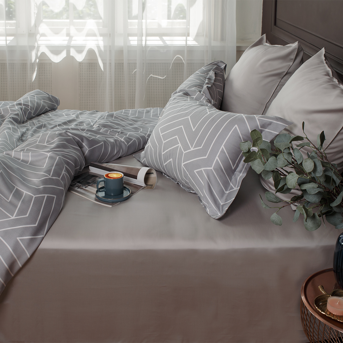 Комплект постельного белья произведен из 100% эвкалиптового волокна Tencel, которое ученые называют инновационным материалом нового поколения.