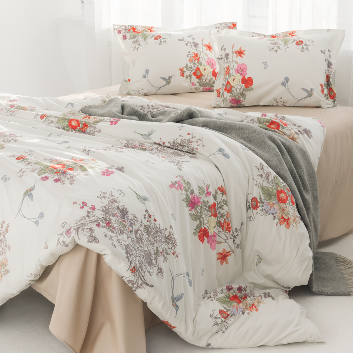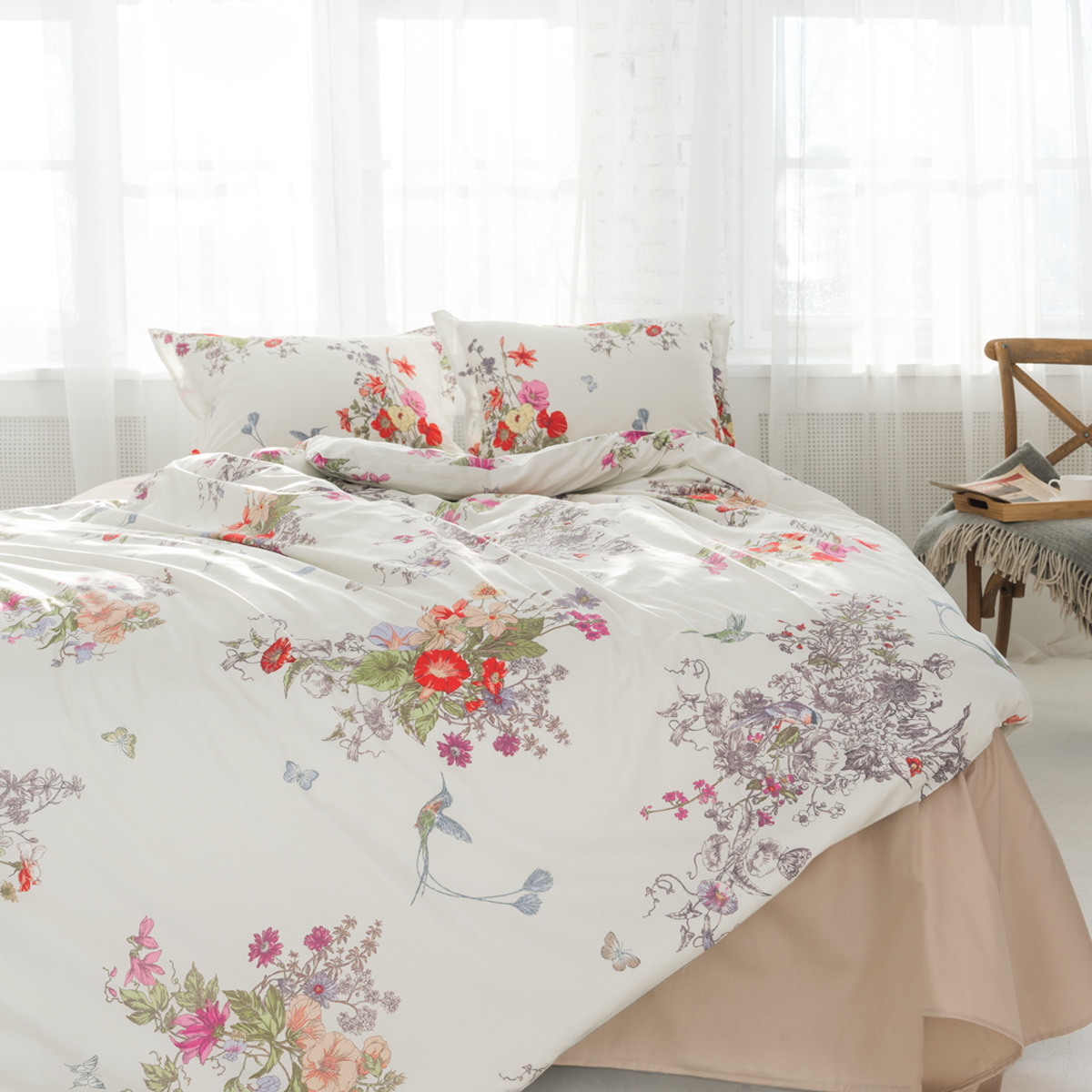 День-ночь, инь-ян - единство противоположностей и гармония цветовых сочетаний. Интригующий синий в созвучии с белым настраивает на философский лад. А нежные цветочные композиции с колибри и бабочками привносят легкость и фантазийность в дизайн постельного белья.