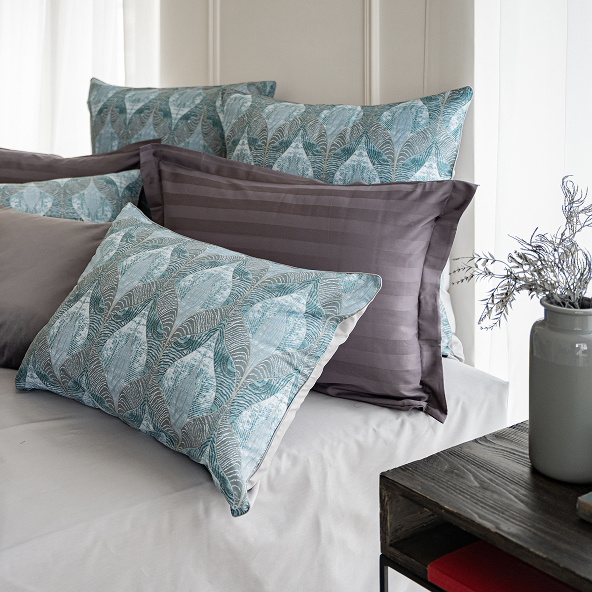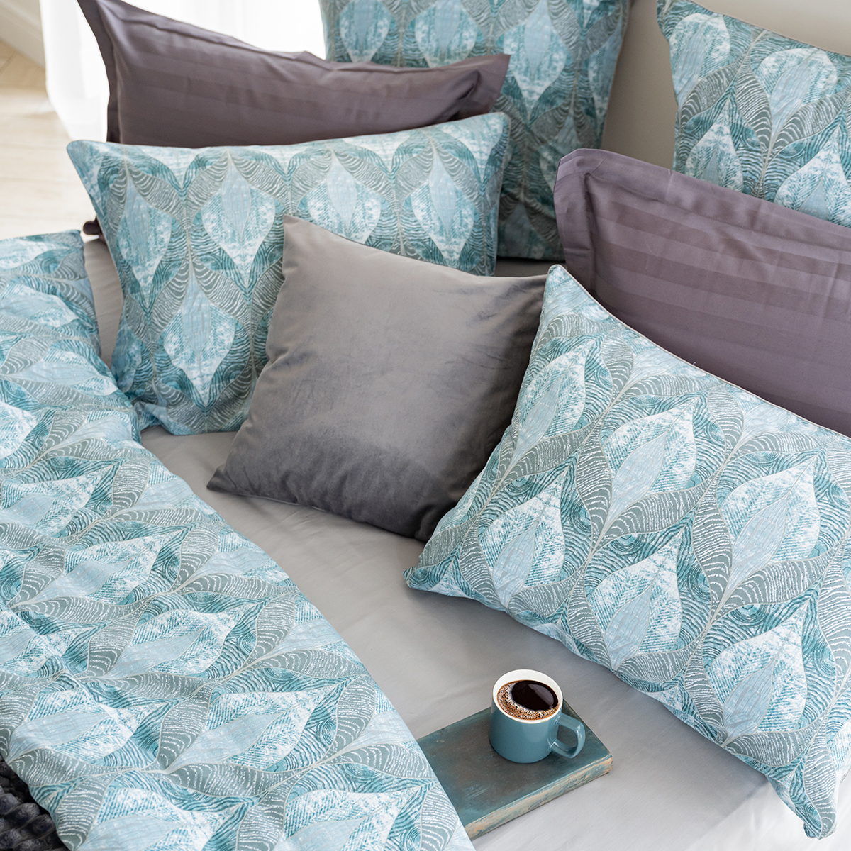 • Наволочки двухсторонние: лицевая сторона– этнический принт, оборотная – однотонная. Декоративный кант по трем сторонам наволочки.
