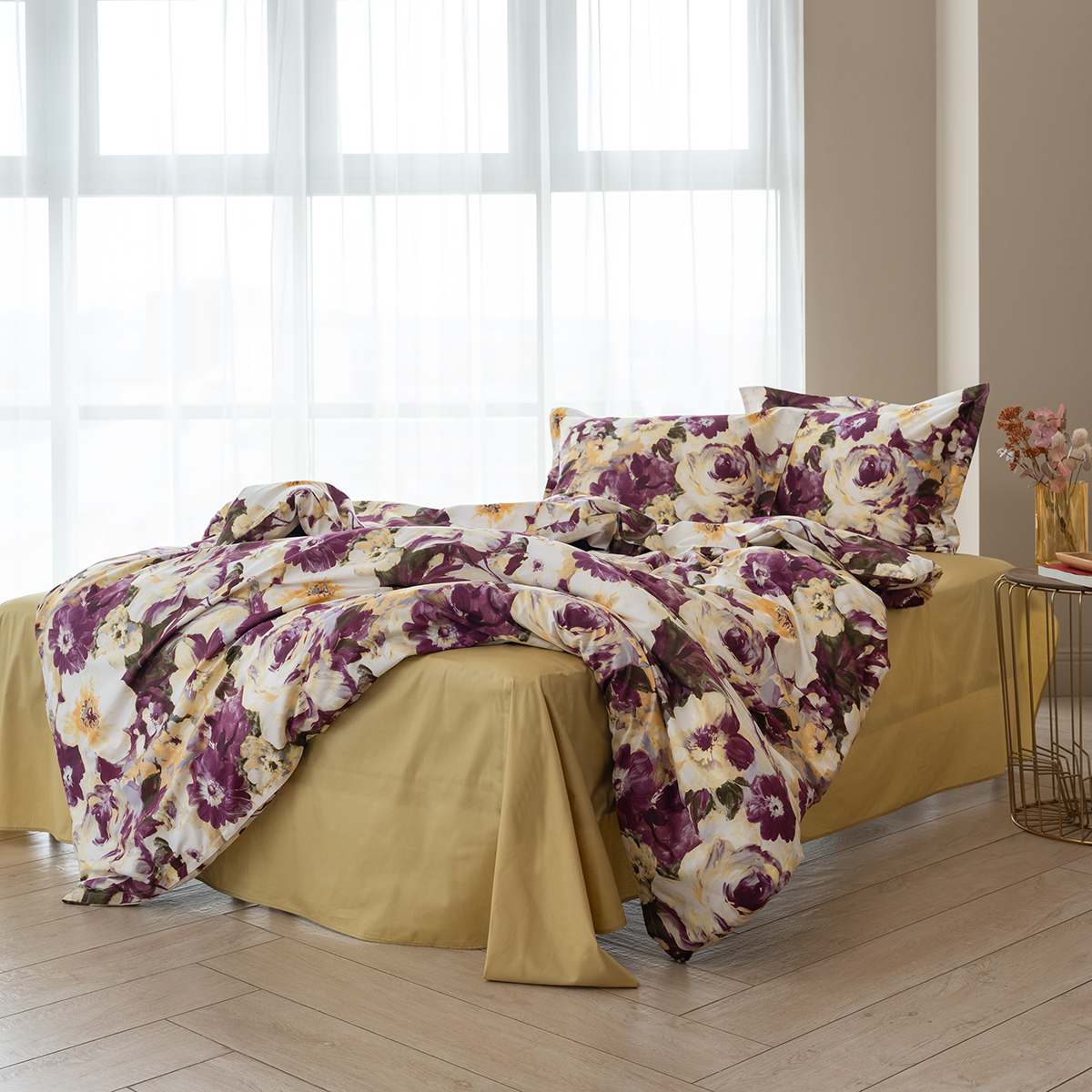 Стильный комплект постельного белья произведен из ткани сатин - 100% хлопок. Благодаря сатиновому плетению двойной крученой нити хлопка, сатин – очень приятная, мягкая, но в то же время прочная ткань. Постельное белье пропускает воздух, поддерживает комфортную температуру тела, когда вы спите.