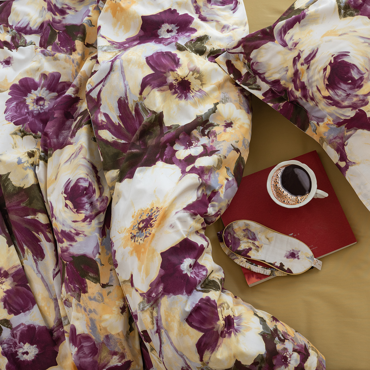Насыщенный цветочный дизайн, выполненный в акварельной технике, излучает заряд энергии и отличного настроения. Цвет бургундского вина в сочетании с горчичным – яркое послевкусие насыщенного дня. Эксклюзивные печатные принты созданы в собственной дизайн студии La Prima.