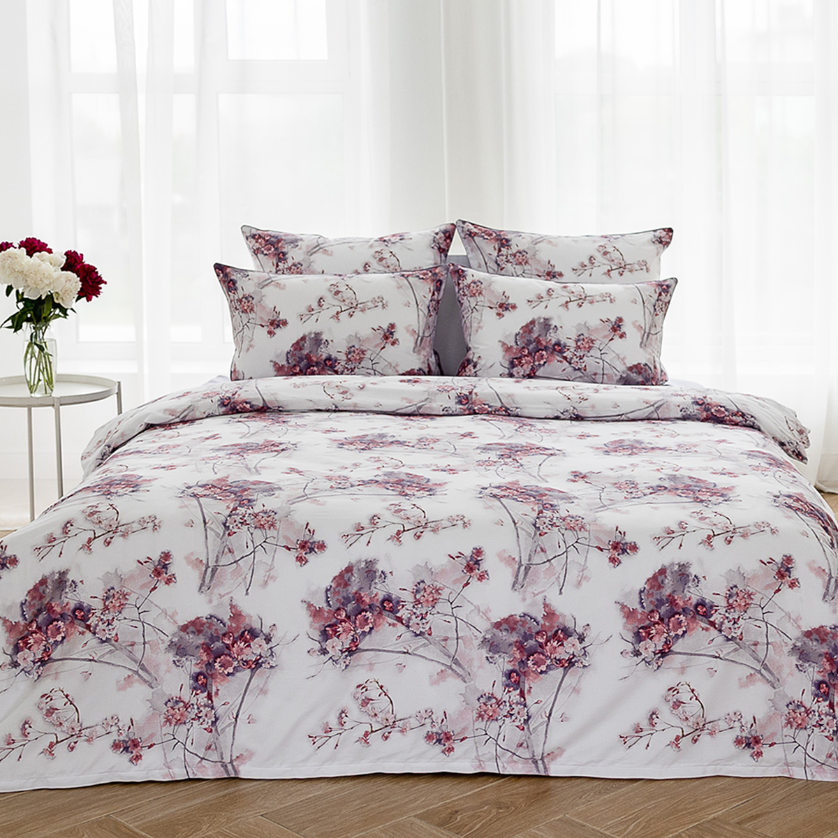 Изящный, будто воздушный, комплект воплощает в себе чарующую романтику, хрупкую красоту и элегантность. Нежное сочетание розово-голубых оттенков, стильно дополненное изящным и легким флористическим орнаментом, словно погружает нас в мир сказочных грез. Неповторимый стиль и гармония вашего интерьера.