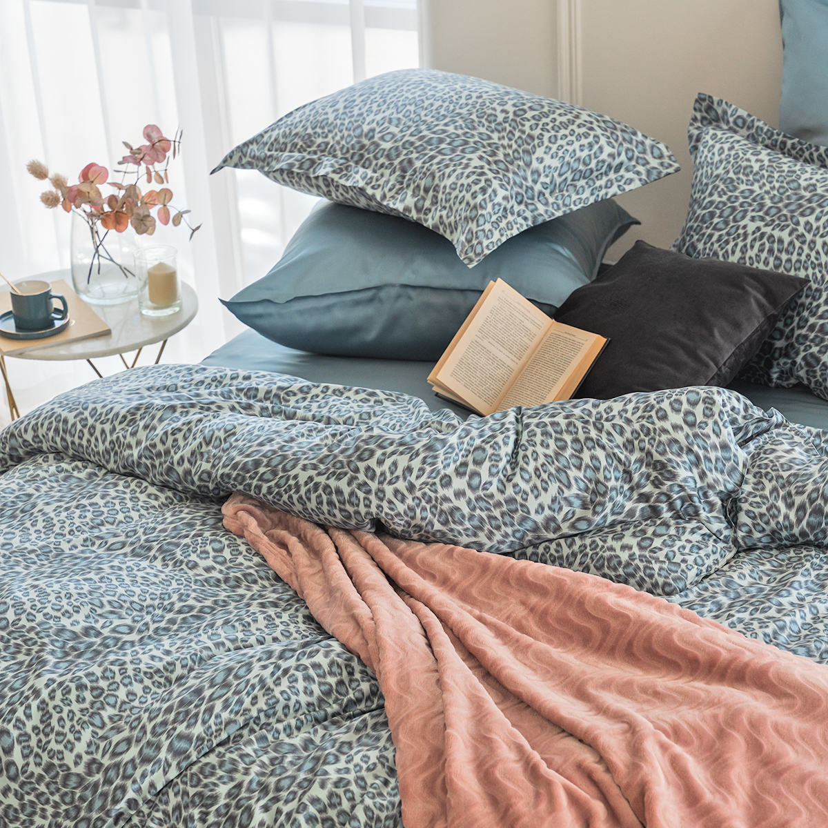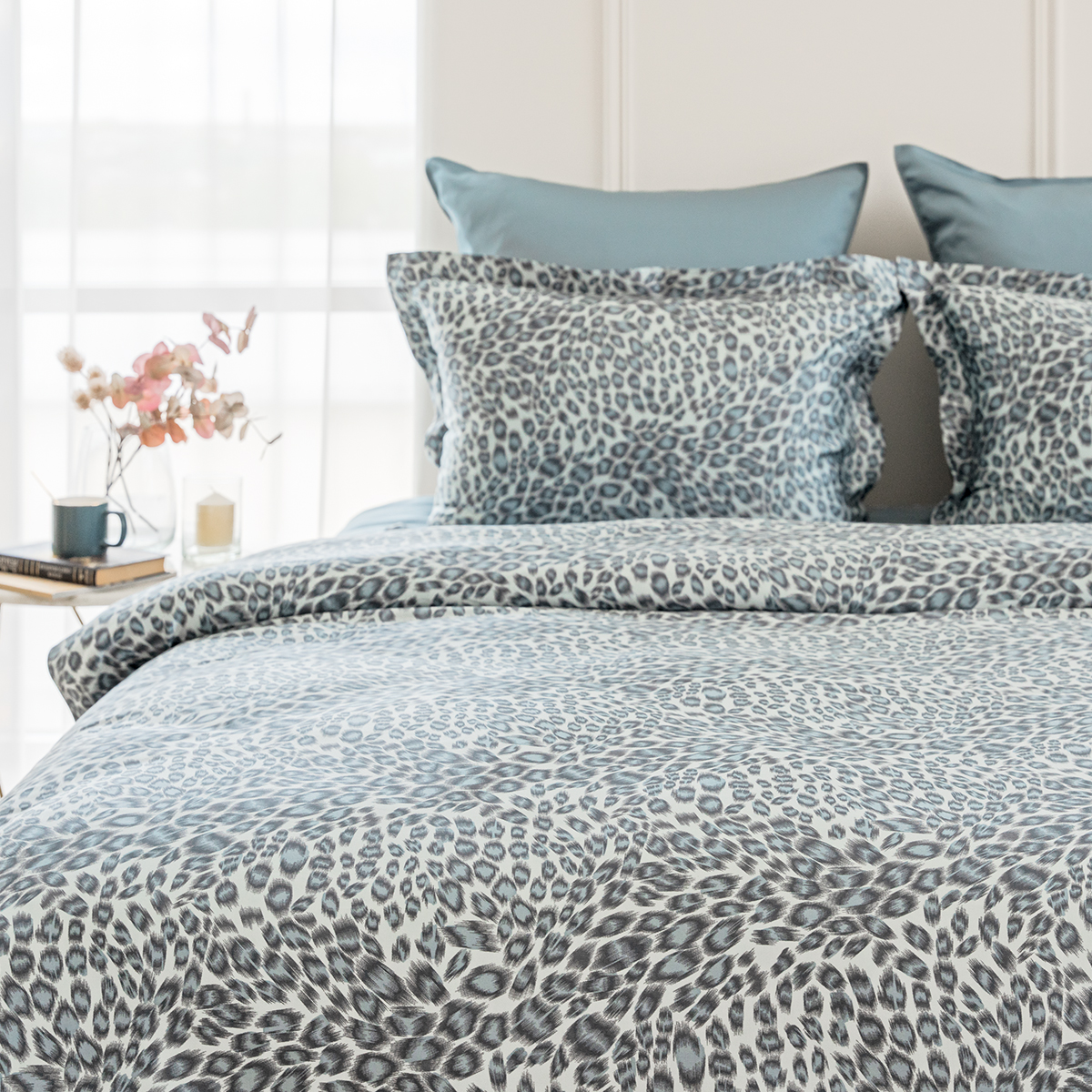Смелая экзотика. Дерзкий и невероятно стильный леопардовый принт выполненные спокойных серо-голубых оттенках подчеркивает чувственность, благородство и респектабельность интерьера