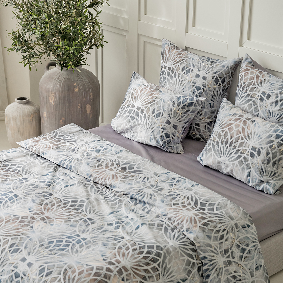 Для комплектов La Prima мы берем самые трендовые авторские дизайны, разработанные дизайнерами компании и приобретенные в известных европейских студиях. Благородный жемчужный блеск ткани подчеркнет роскошное убранство вашей спальни.
