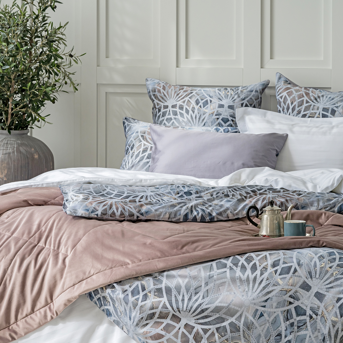 Нет ничего прекраснее кровати, которая так и манит в свои нежные объятия! Наши исключительно мягкие комплекты из мако-сатина действуют именно так — они дышащие, гладкие, прочные и словно созданы для аристократической спальни.