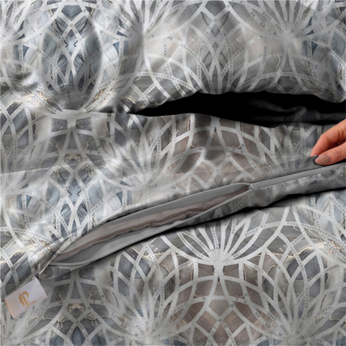 Молния-«невидимка» во всю ширину по нижнему краю и клапаны для рук в верхней части пододеяльника, а также широкий запах наволочки позволяют менять белье быстро как никогда.