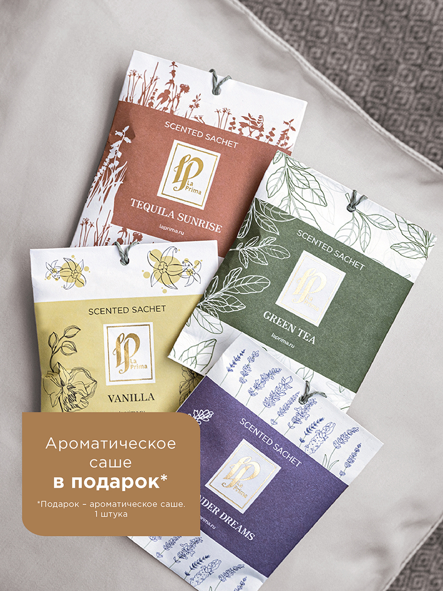 В каждой коробке вы найдете комплимент от нас — ароматическое саше, которое удобно повесить в шкаф или положить в ящик с постельным бельем.