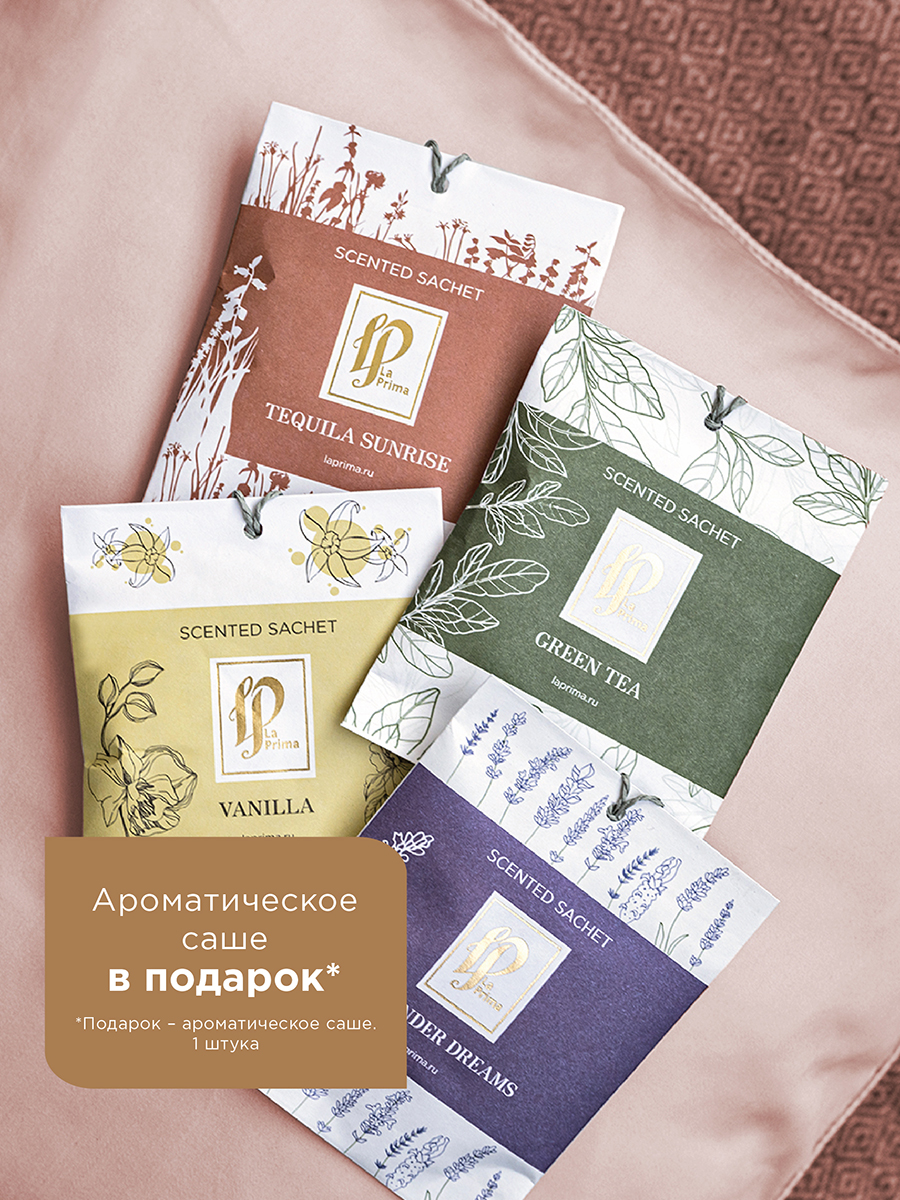 В каждой коробке вы найдете комплимент от нас — ароматическое саше, которое удобно повесить в шкаф или положить в ящик с постельным бельем.