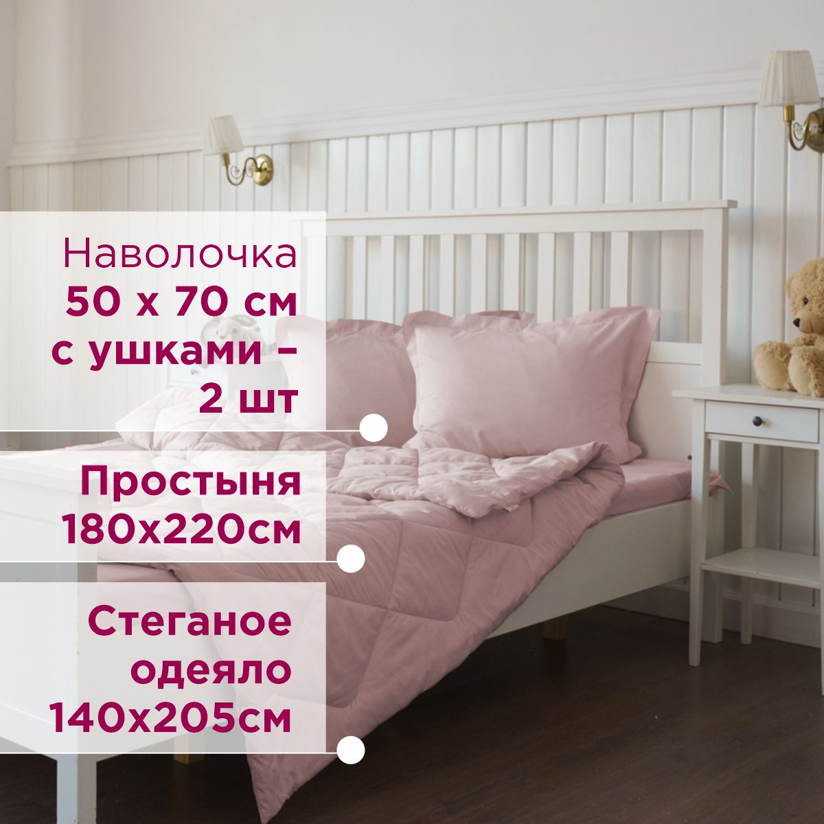 | Детали: | Наволочка 50х70см - 2 шт, размер одеяла 140 х 205 см. простыня 180 х 220 см. |