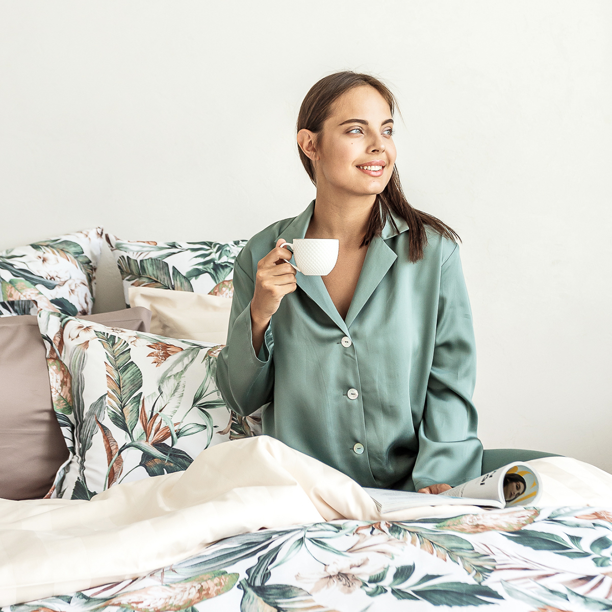 В ткани мако-сатин, из которой произведена коллекция, используется более тонкая 60-я нить. Плотность ткани 300 ТС. За счет специальной скрутки нити, ткань получается очень мягкая и приятная на ощупь.