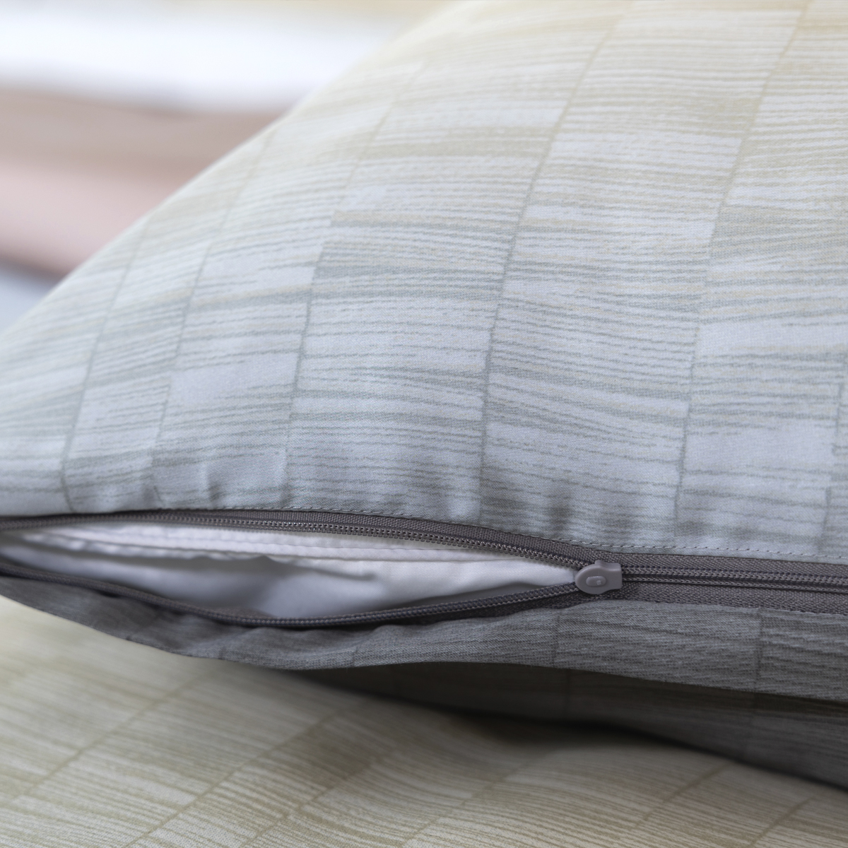 • 4 наволочки в комплекте: 50х70см - декоративные ушки 4 см с двойной отделочной отсрочкой по трем сторонам наволочки. «Невидимая» молния по широкой стороне наволочки. 70х70см - двойная отделочная отсрочка по 3м сторонам наволочки. «Невидимая» молния по нижнему краю наволочки.