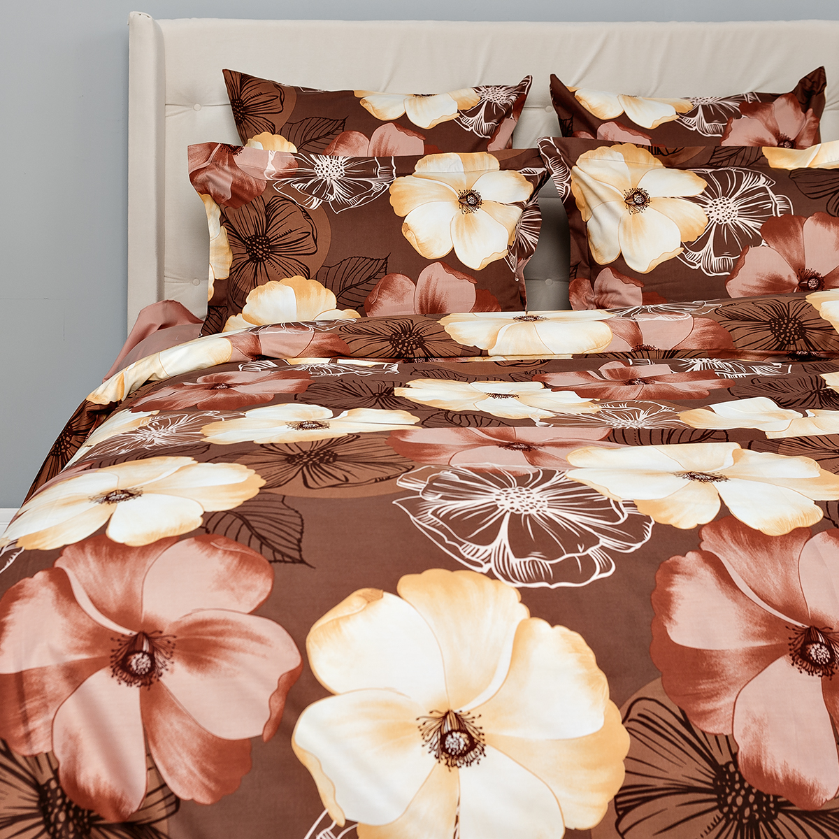 Благородный и глубокий шоколадный оттенок в сочетании с крупным цветочным принтом смотрится по-настоящему изысканно и вызывает самые приятные ассоциации, дарит тепло и чувство комфорта. Восхитительное ощущение гармонии и прекрасного настроения.