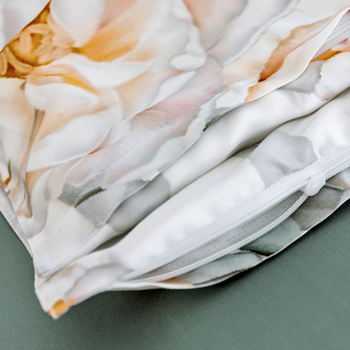 - 4 наволочки в комплекте:50х70см - декоративные ушки 4 см с двойной отделочной отсрочкой по трем сторонам наволочки. «Невидимая» молния по широкой стороне наволочки. 70х70см - двойная отделочная отстрочка по трем сторонам наволочки. «Невидимая» молния по нижнему краю наволочки.