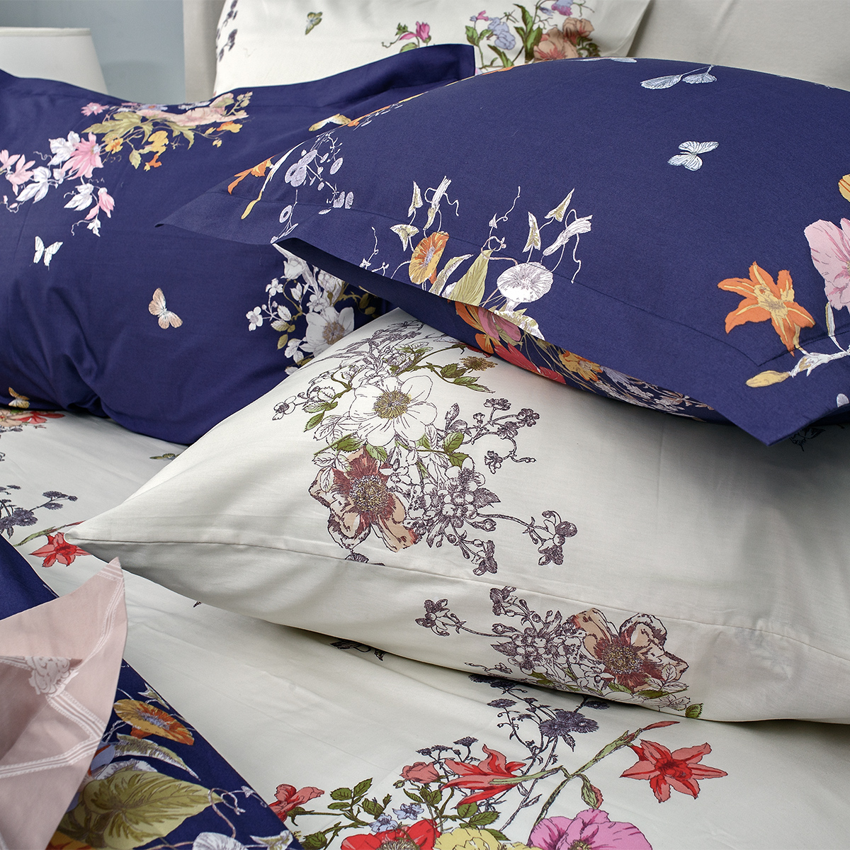День-ночь, инь-ян - единство противоположностей и гармония цветовых сочетаний. Интригующий синий в созвучии с белым настраивает на философский лад. А нежные цветочные композиции с колибри и бабочками привносят легкость и фантазийность в дизайн постельного белья.