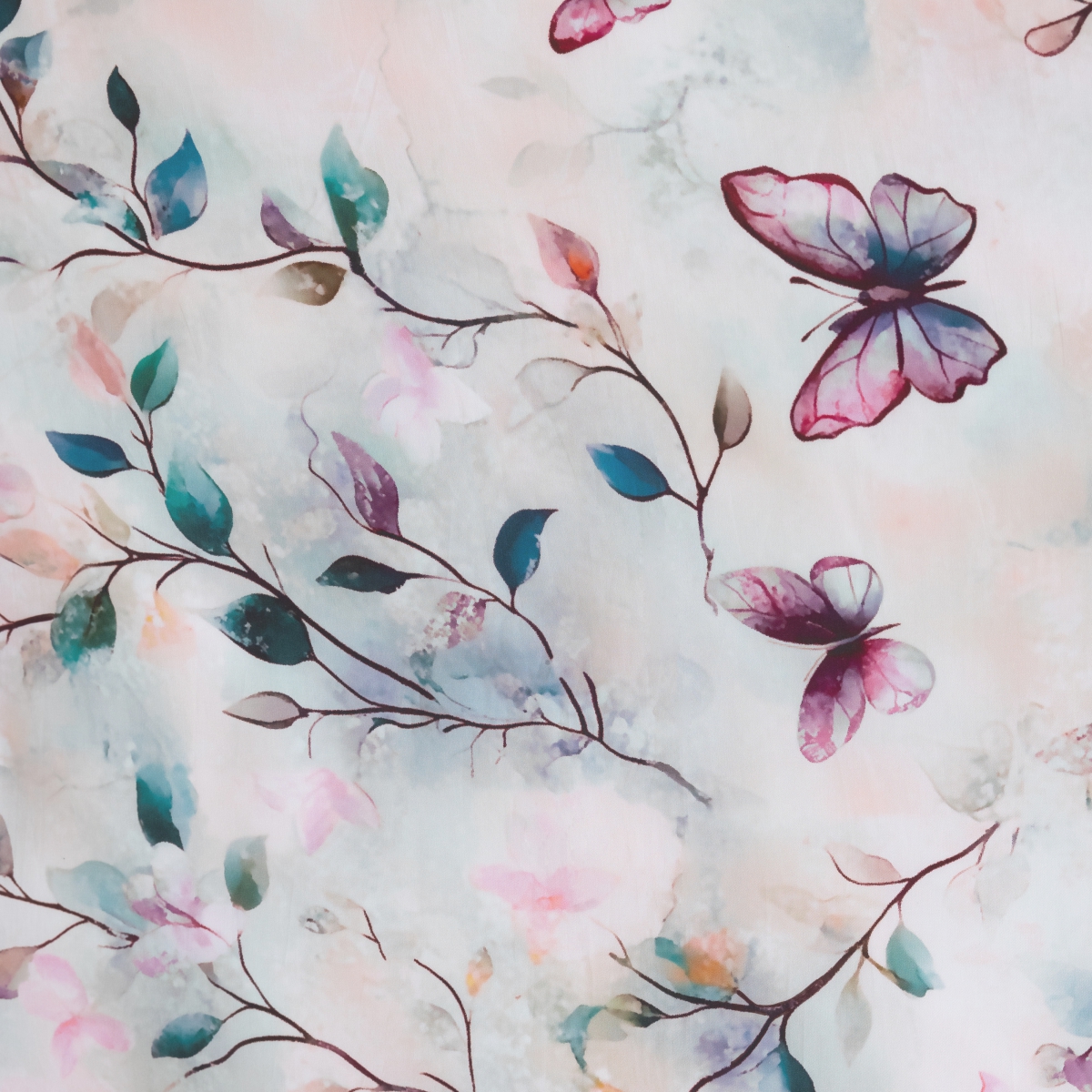 Очаровательный дизайн, вдохновленный природной нежностью, переносит в мир легкости и гармонии. Акварельные ветви с утонченными листьями и грациозные бабочки создают воздушную композицию, наполненную романтикой. Нежная пастельная палитра с плавными переходами оттенков подчеркивает изысканность и уют. Идеальный выбор для тех, кто мечтает о теплой и вдохновляющей атмосфере в спальне.