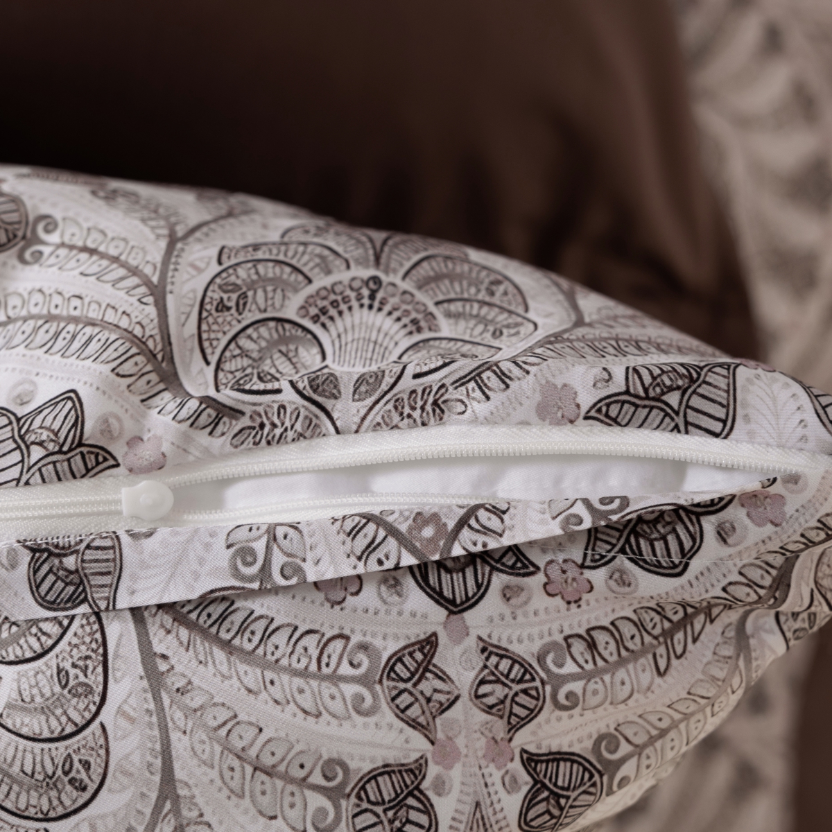 Детали: Наволочки на молнии с декоративными ушками по 3-м сторонам и кантом. Пододеяльник на молнии