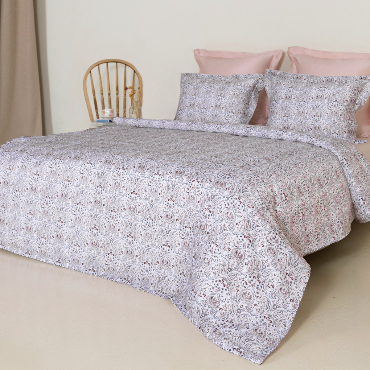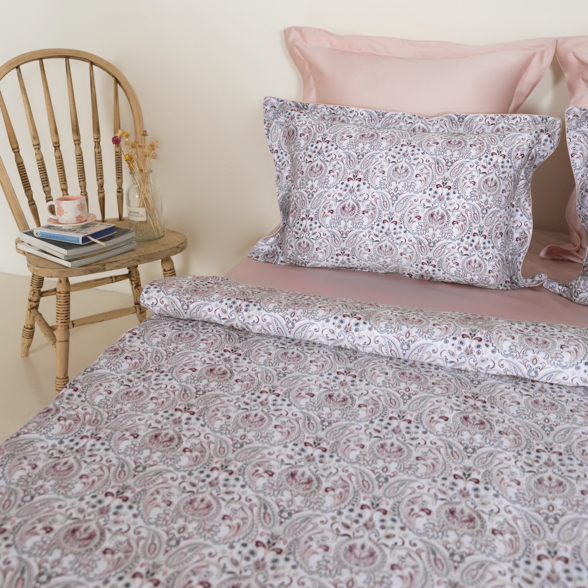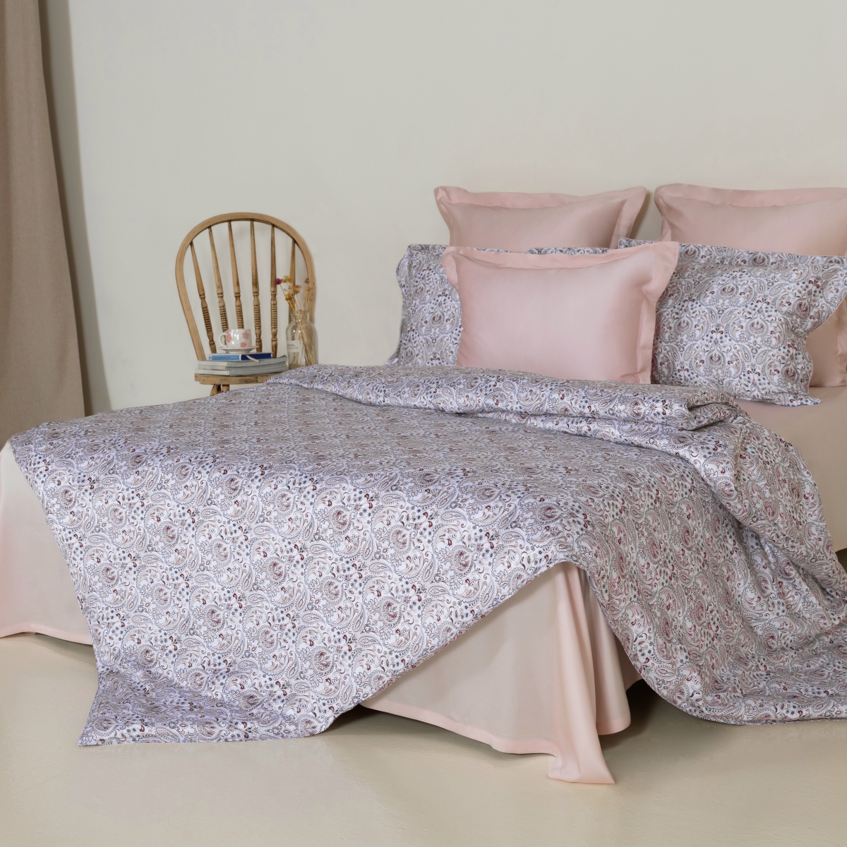 Элегантный дизайн, вдохновленный изысканной классикой, наполняет пространство утонченным шармом. Роскошный узор в благородной палитре создаёт гармоничную и стильную композицию. Мелкие детали орнамента придают комплекту особую выразительность, а нежный фон делает его универсальным для любого интерьера. Идеальный выбор для тех, кто ценит благородную эстетику и уютную атмосферу в спальне.