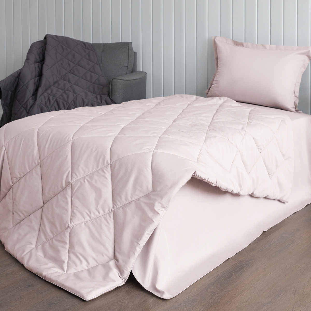 • Стеганое одеяло 140х205см. Одеяло всесезонное, плотность 200гр, что позволяет пользоваться им круглый год. Наполнитель у одеяла: гипоаллергенное 3D микроволокно, не сбивается после стирок.