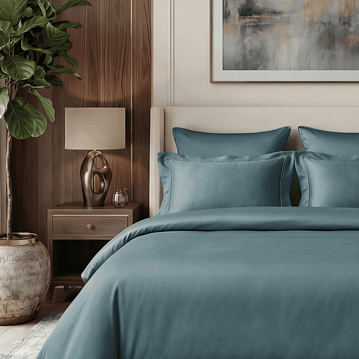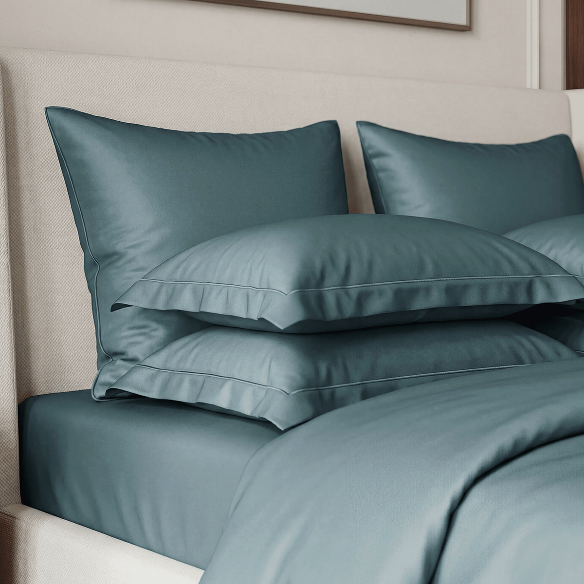 Редкий длинноволокнистый хлопок: нити прочнее и тоньше обычного, поэтому ткань не пиллингуется и не теряет форму. Сатиновое плетение создаёт живое сияние, как у шёлка, но с комфортом дышащего хлопка. Не электризуется, не скользит, приятен к телу. Выдерживает 500+ стирок без потери яркости и мягкости.
