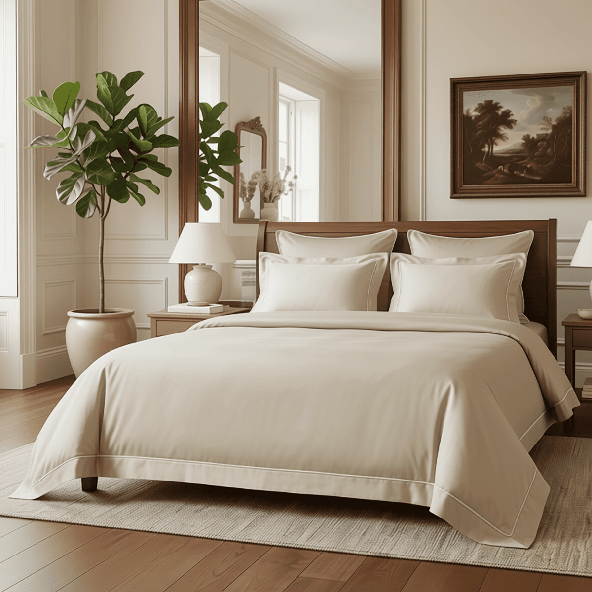 Элегантные «ушки» с изысканным кантом (7 см) на наволочках и пододеяльнике — выглядят дорого и стильно. Молнии на всех элементах. Подарочная упаковка — для подарка или ощущения праздника для себя.