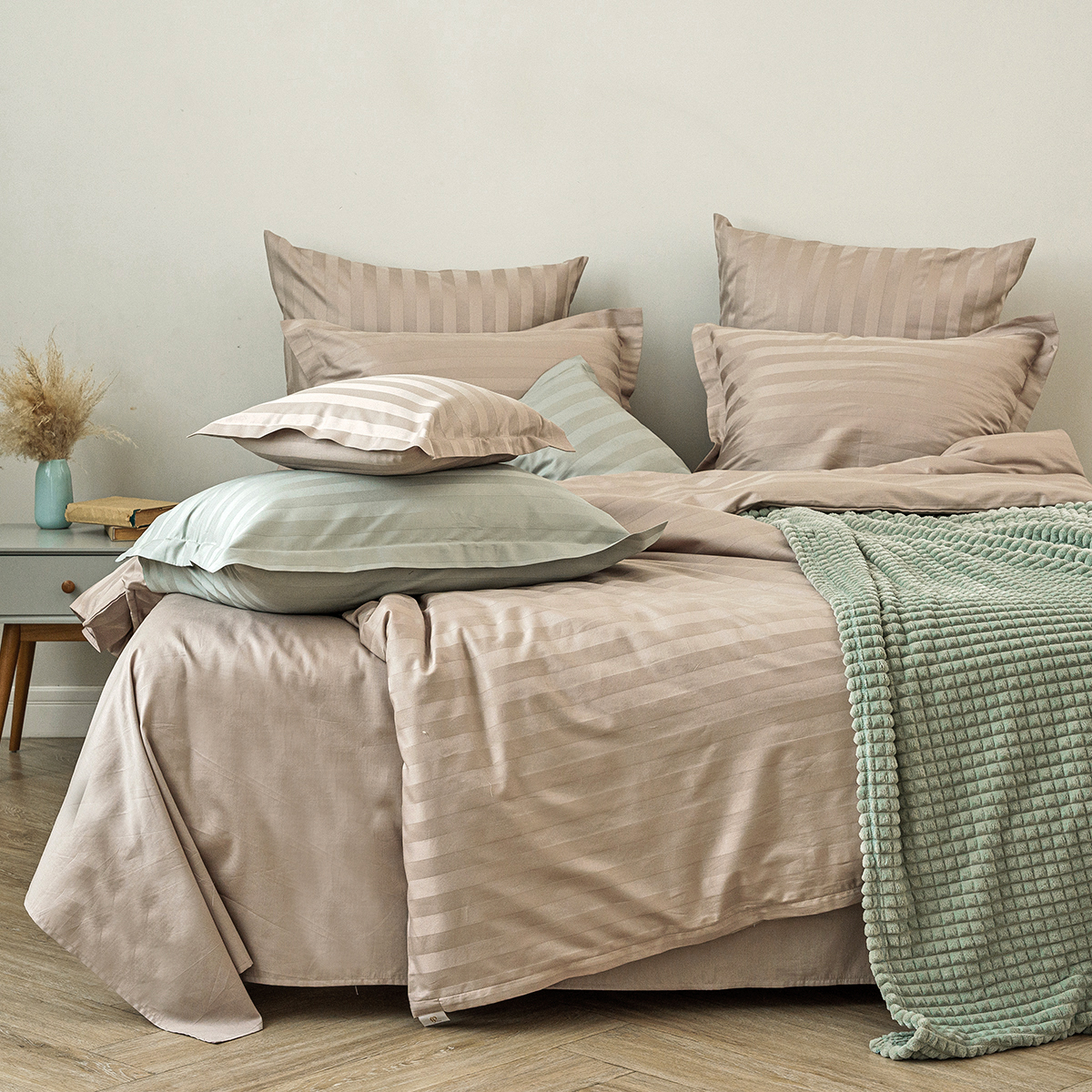 Однотонная стильная наволочка произведена из ткани страйп-сатин – 100% хлопок с жаккардовым рисунком в виде полос 3х3 Благодаря специальному плетению - это гладкая, нежная и приятная на ощупь ткань. Пропускает воздух, поддерживает комфортную температуру тела, когда вы спите.