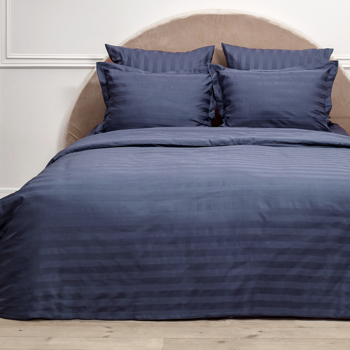 Однотонный стильный пододеяльник произведен из ткани страйп-сатин – 100% хлопок с жаккардовым рисунком в виде полос 3х3.