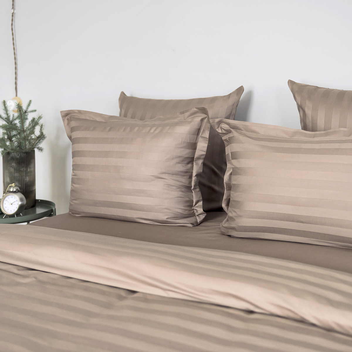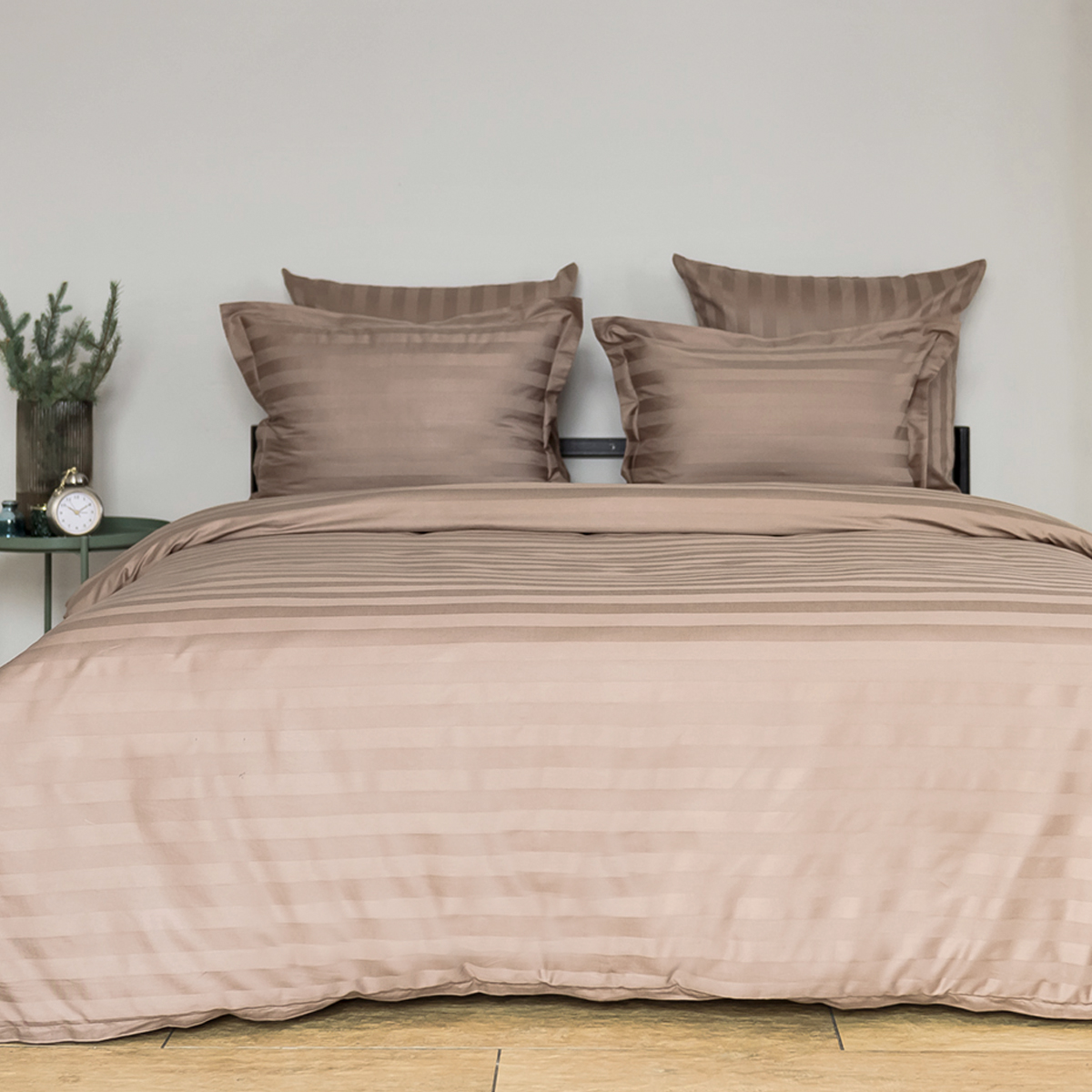Однотонный стильный пододеяльник произведен из ткани страйп-сатин – 100% хлопок с жаккардовым рисунком в виде полос 3х3